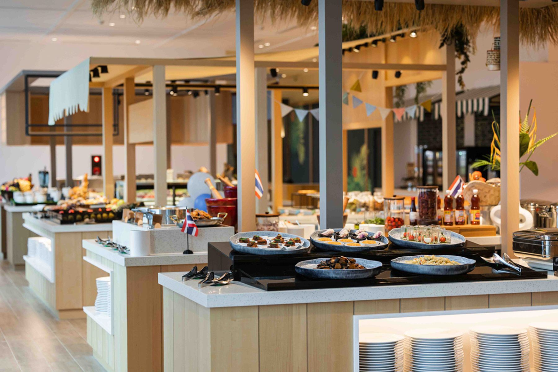 享受頂級遊輪假期外,酒店力邀國際星級名廚江振誠擔任餐飲創意總監共同規劃,第一階段開放archi藝廚、pelago百匯廚、coco椰林咖啡等餐飲服務,旅客有如搭乘豪華遊輪時可依喜好選擇不同主題的餐廳,讓味蕾悠遊於多元異國的美味中。