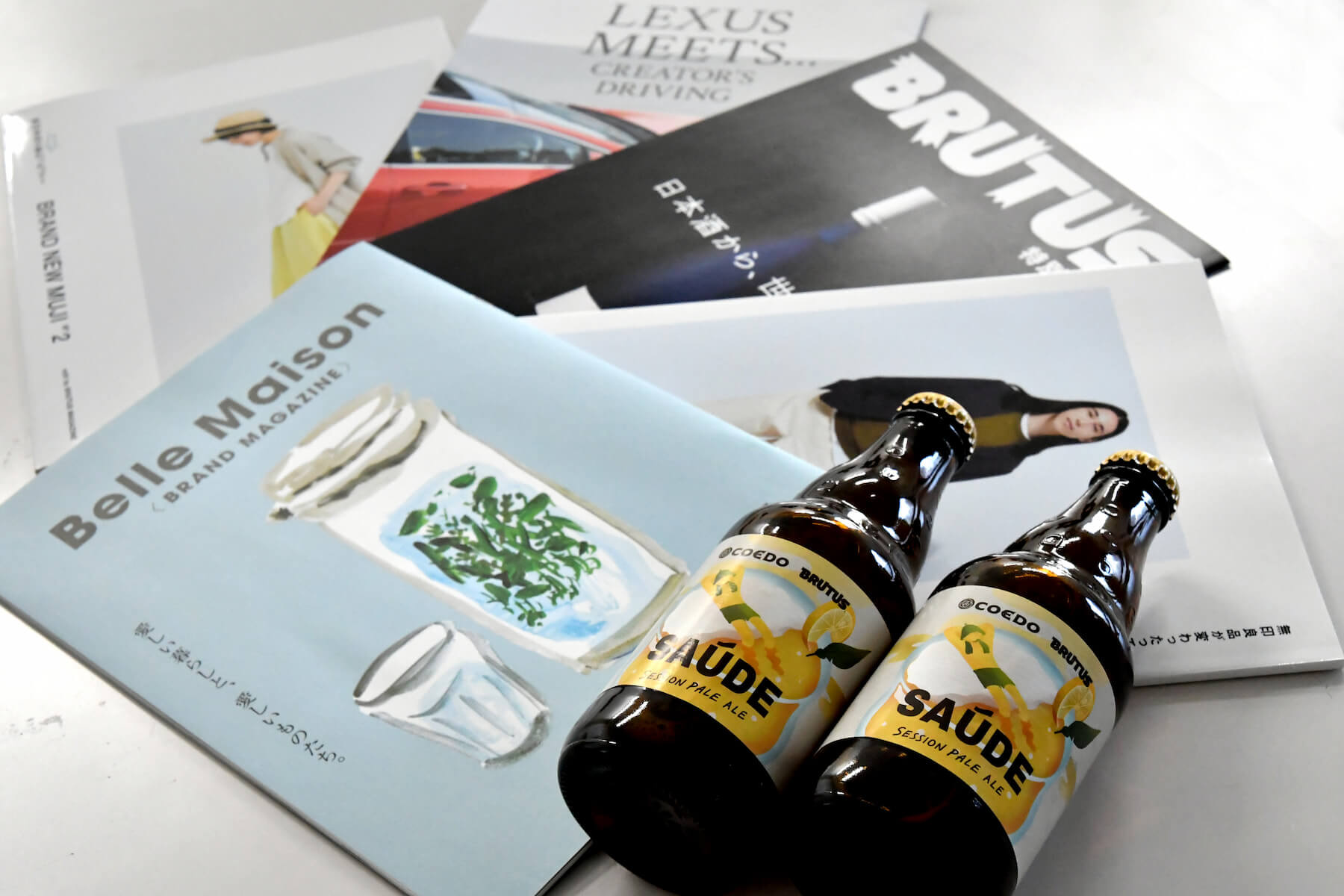 田島:在去(2022)年我們曾推出溫泉專題特輯,與日本知名手工啤酒品牌合作生產一款啤酒,讓大家泡完溫泉後,可以愉快地暢飲啤酒;我們也幫無印良品(MUJI)製作新產品的型錄,放在無印良品店鋪供民眾索取。這些都是運用《BRUTUS》的編輯力,發想出的各種創意產品與企畫。