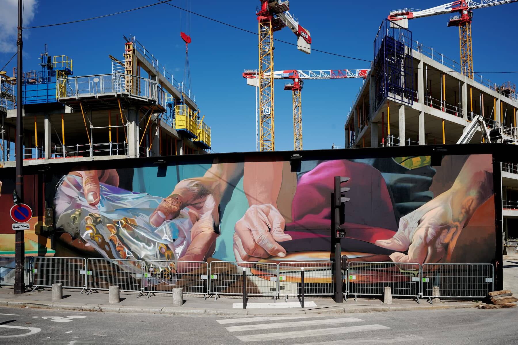 確實,Le 19M就如同下一個世代巴黎的時尚與文化基地,動工時便請城市藝術製作公司Quai 36協作,邀請國際知名藝術家Case Maclaim設計塗鴉壁畫,以手部特寫向偉大的工匠們致意,「手」的圖案意象亦是藝術家本身著名的風格標記。面對巴黎街頭的裝飾藝術,呈現了工坊的本質,像是強而有力的自我介紹般,邀請周邊居民進入其公共設施,感受工坊本身的創造力。