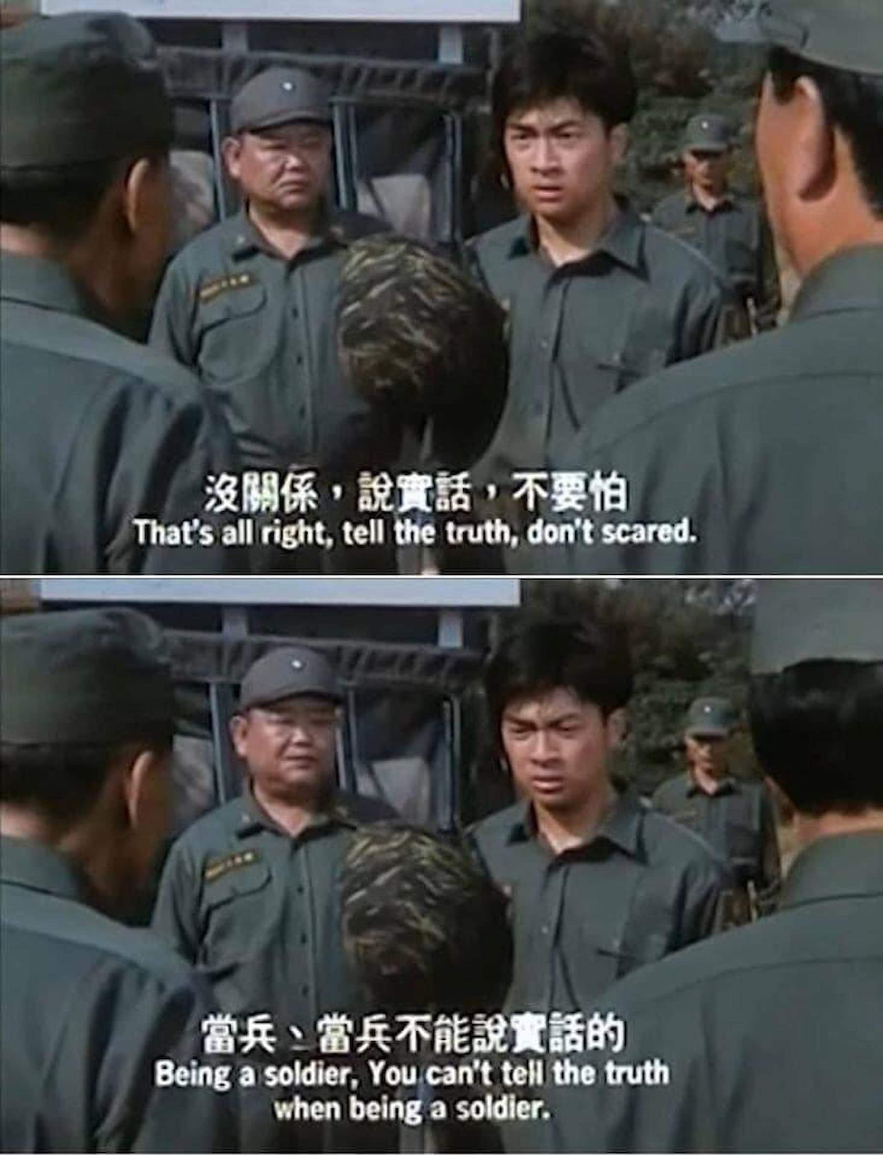 我們可以觀察到,軍事電影最一開始是屬於人民發聲的管道,從被官方審查,到成為官方宣傳的工具,背後的意涵往往皆與政治意識型態以及時局情勢無法脫勾,即便後來進入資本主義的現代社會,成本和票房成為電影指標,然而創作的風格依然與社會氛圍息息相關,甚至最終能成為代表的,無非還是揭露軍中陋習的橋段。