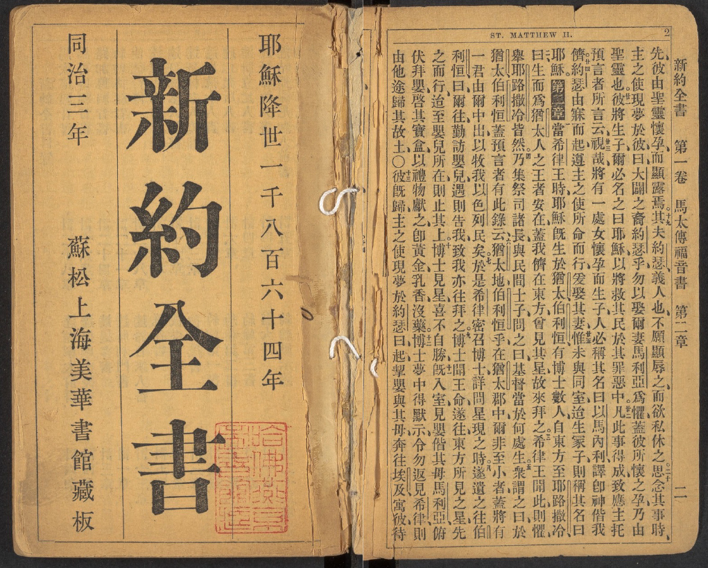 1864年上海美華書館出版《新約聖經》,使用五號明體活字CC 4.0 BY Harvard Library