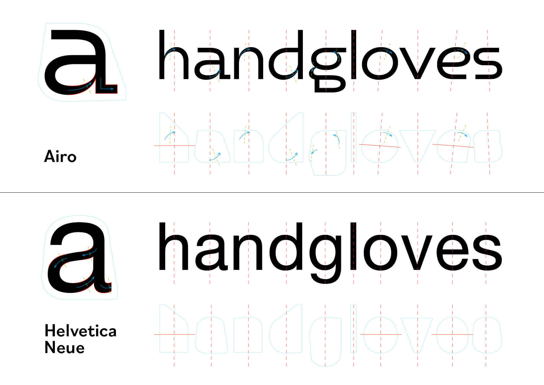 近年歐文字型的動態感(Airo),與軸線正中之 Helvetica 相較之。原圖:季風團隊提供。
