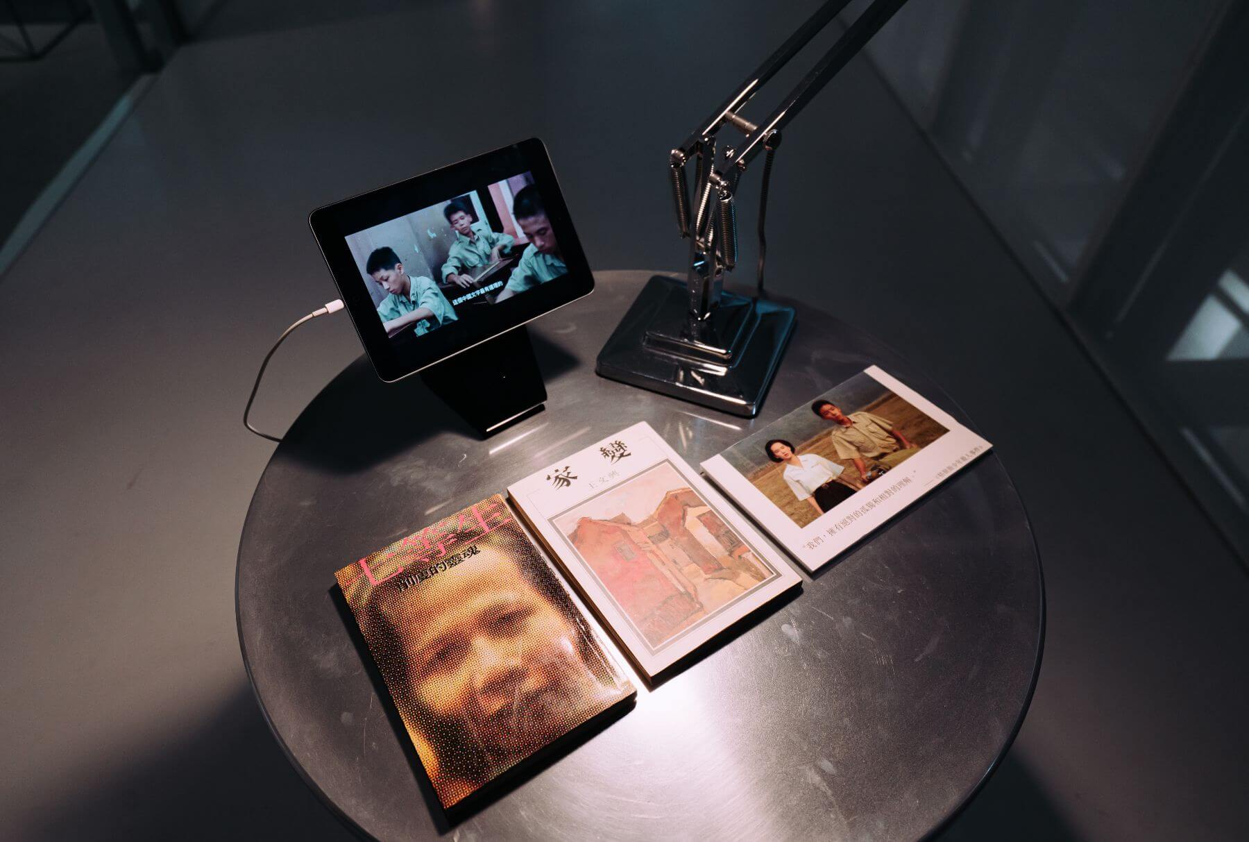 建築個展《間接共生》三樓的閱讀角落桌上擺放《台北人》、《家變》、《七等生全集》等書。(圖片/楊雅淳攝影)