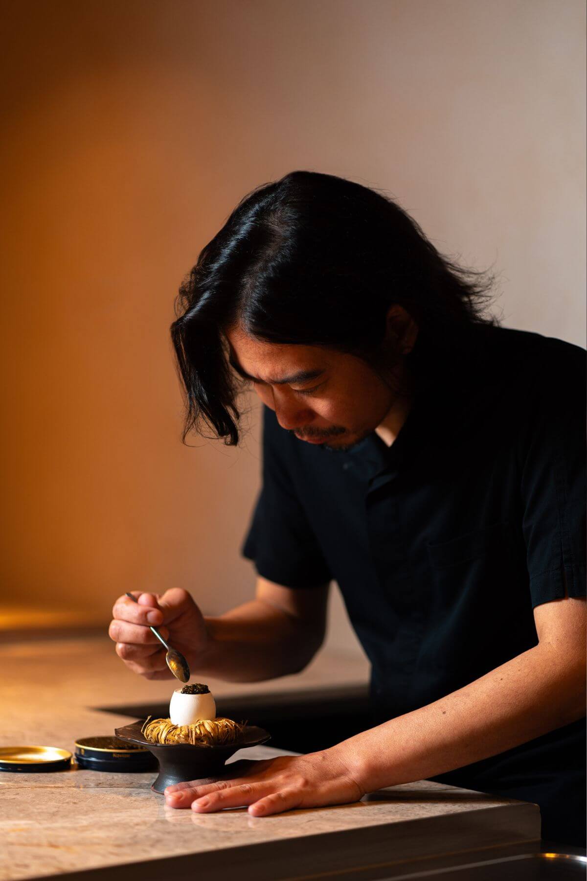 他於2013年創設現代法菜餐廳「La Kanro」,並獲得米其林一星肯定。擅於以法式底蘊結合日本元素的他,將人生經驗與精湛廚藝交織,轉化為躍於舌尖的感動滋味,此次首度將鐵板燒的技法,融入客座菜單中,同時帶來多道經典招牌料理,以11道菜式搭配酒款的創意展現,演繹絕無僅有的極致餐宴。