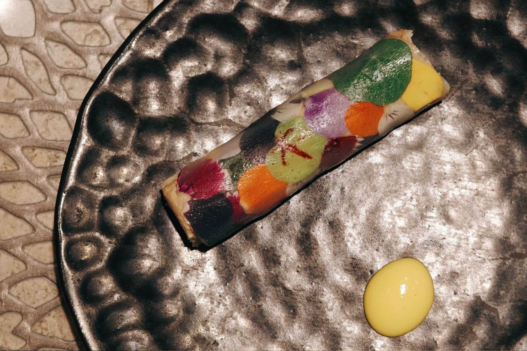 仿若藝術品般精緻的絢麗外觀下,Q彈春捲皮巧妙結合龍蝦、鵝肝醬與平貝,搭配芒果與萊姆風味的酸甜醬汁,作為La Kanro最具代表性的經典料理,首次在海外餐會中登場!