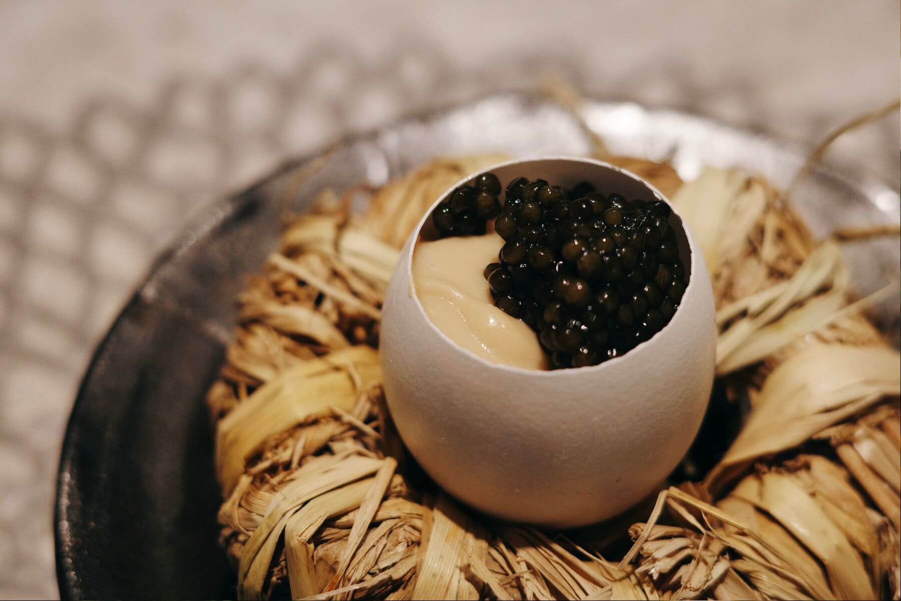La Kanro鎮店招牌料理,將蛋黃做油封,以橄欖油小火力低溫烹調,搭配指主廚獨創的煙燻腰果醬和魚子醬,為仲嶺主廚的著名招牌菜之一。從底部挖起來享用,多層次的風味與口感,在舌尖上迸發驚喜。