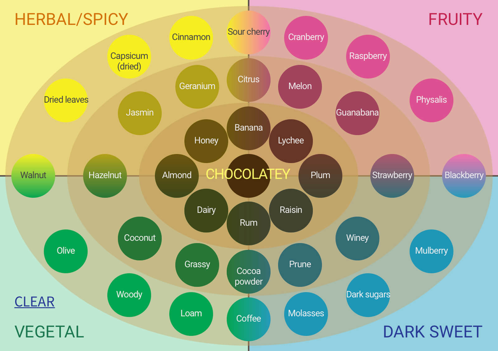 藉由風味系統的劃分,經過訓練的巧克力評鑑師能夠快速而精確的掌握巧克力所屬的風味象限,並據此依照這個象限的標準去拆解、分析巧克力的品質與性格。