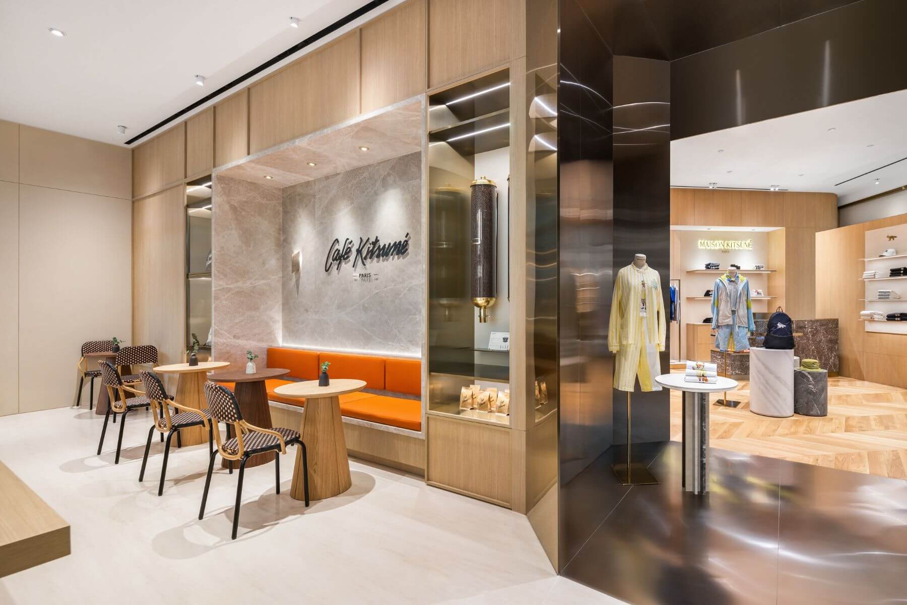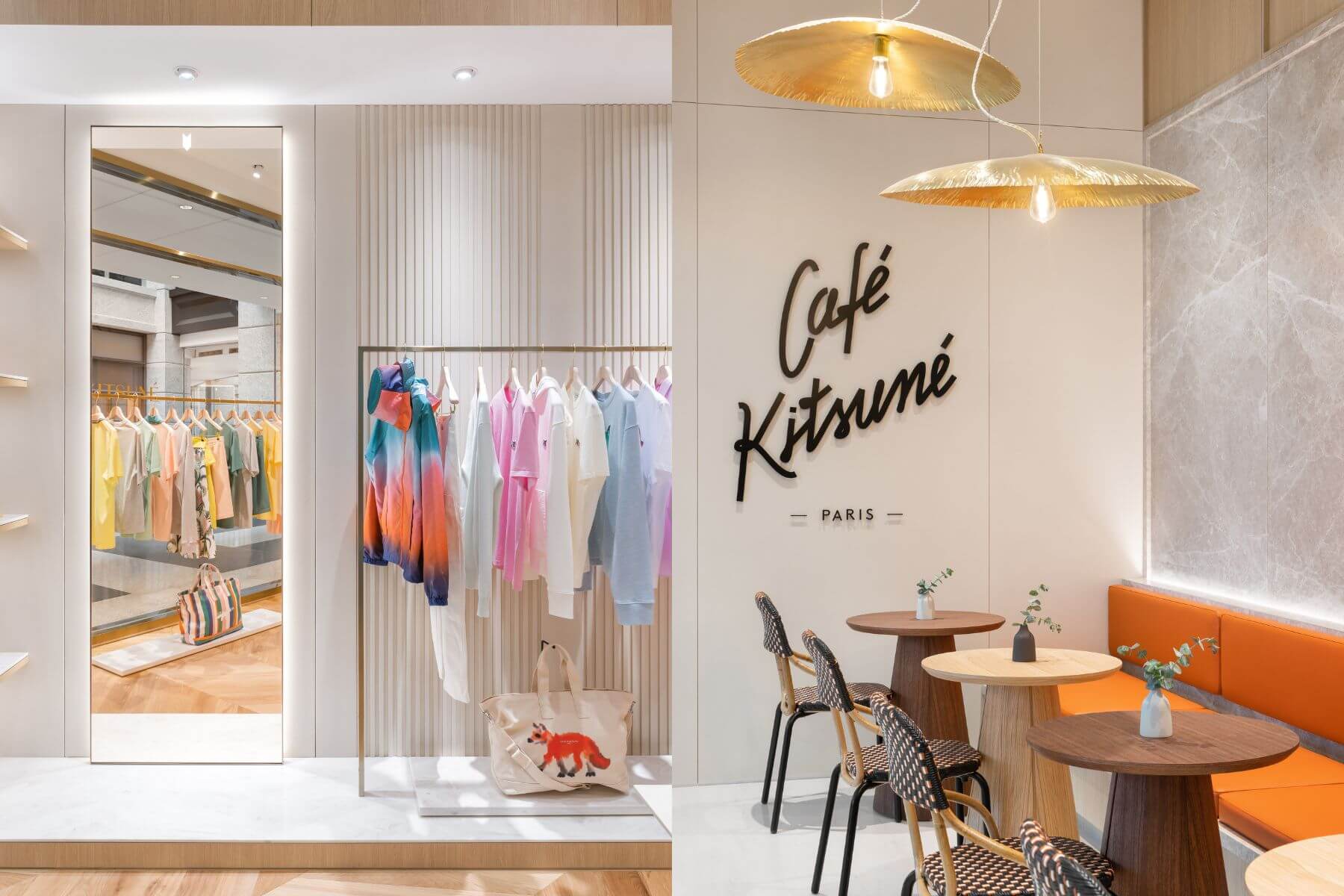 專門店以「店中店」形式呈現,結合Maison Kitsuné(時裝品牌)與Café Kitsuné(咖啡廳)。