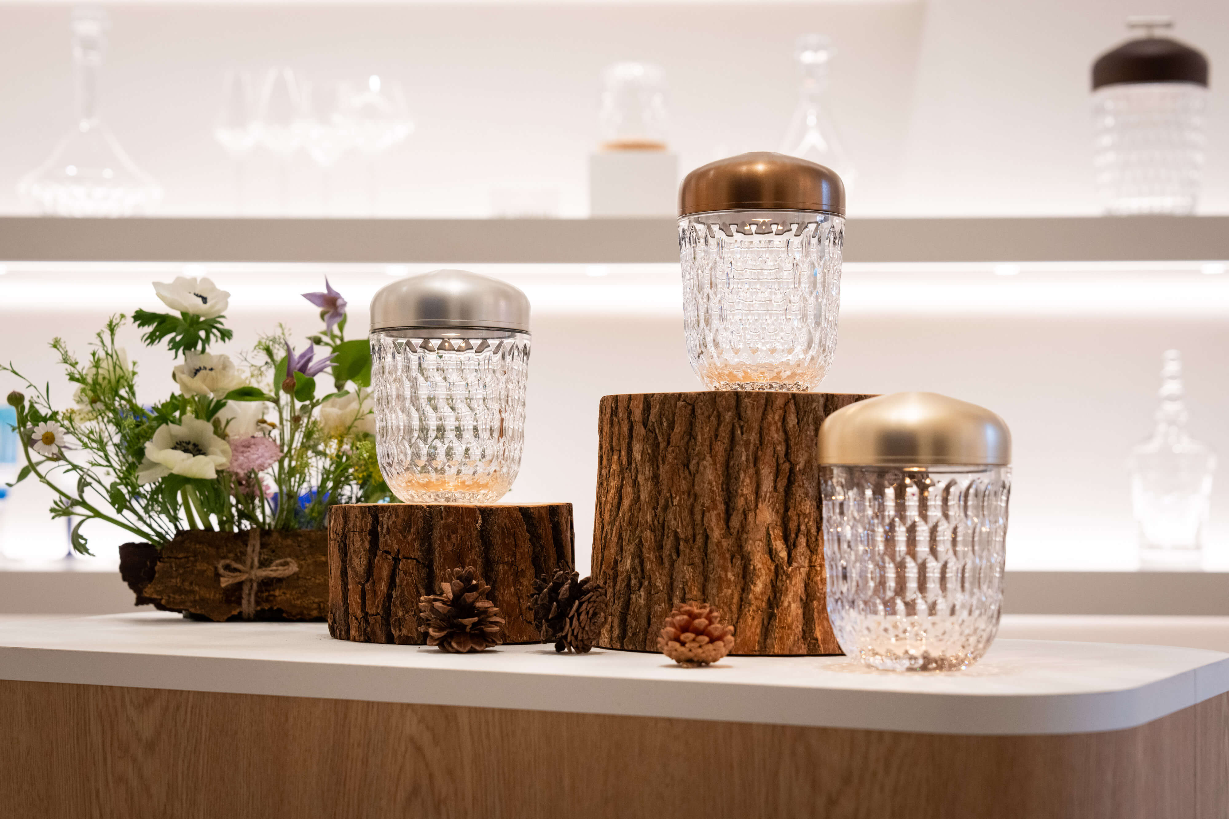 與此同時,Saint-Louis亦展出全新推出的Folia 迷你攜帶式燈具。此系列結合精湛工藝與簡約現代設計,完美演繹當代藝術美學。藉著水平和垂直線條的相互作用,著名法國設計師Noé Duchaufour-Lawrance設計出一系列極具實用性的作品,從餐具到照明,從酒器到裝飾物件,每日生活均可使用。富韻律感的材質結合實用性高的設計,創造出富有現代感的水晶臻品系列。