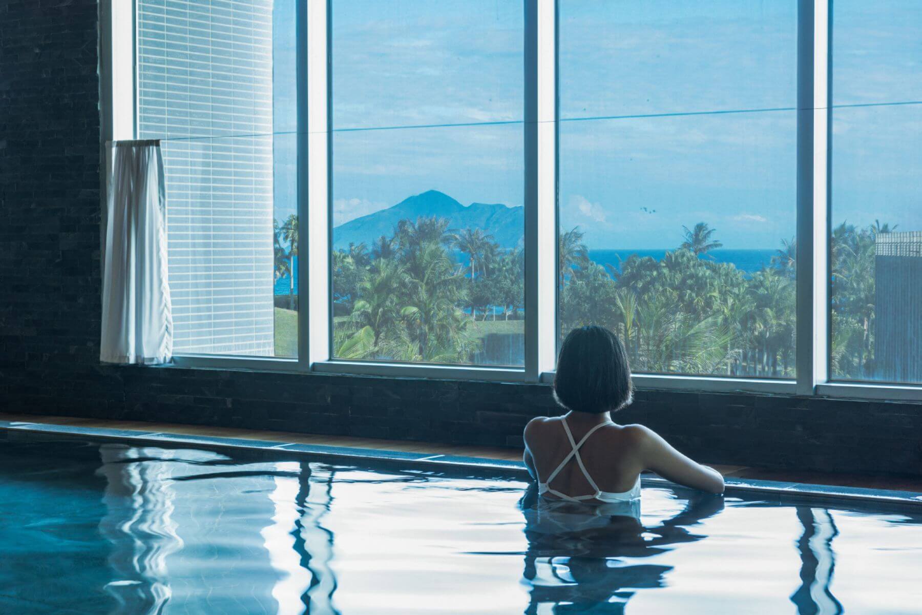 到了頂層的「thermal club溫泉俱樂部」在露天風呂仰望漫天星辰,或是在裸湯溫泉沉浸於香杉芬芳裡,與遠方的龜山島一起泡入溫泉,安排健身、瑜珈等舒心體驗。日裡,漫步在凱渡廣場,循著椰林和小丘夾道的彎路,走上盡頭處的教堂,身處一旁猶如與波浪、與龜山島融為一體。回到客房,備有包攬山嵐、海洋的天際房型,將自然的藍色和綠色引入於客房空間,一早醒來,擁抱龜山朝日的金燦晨曦。