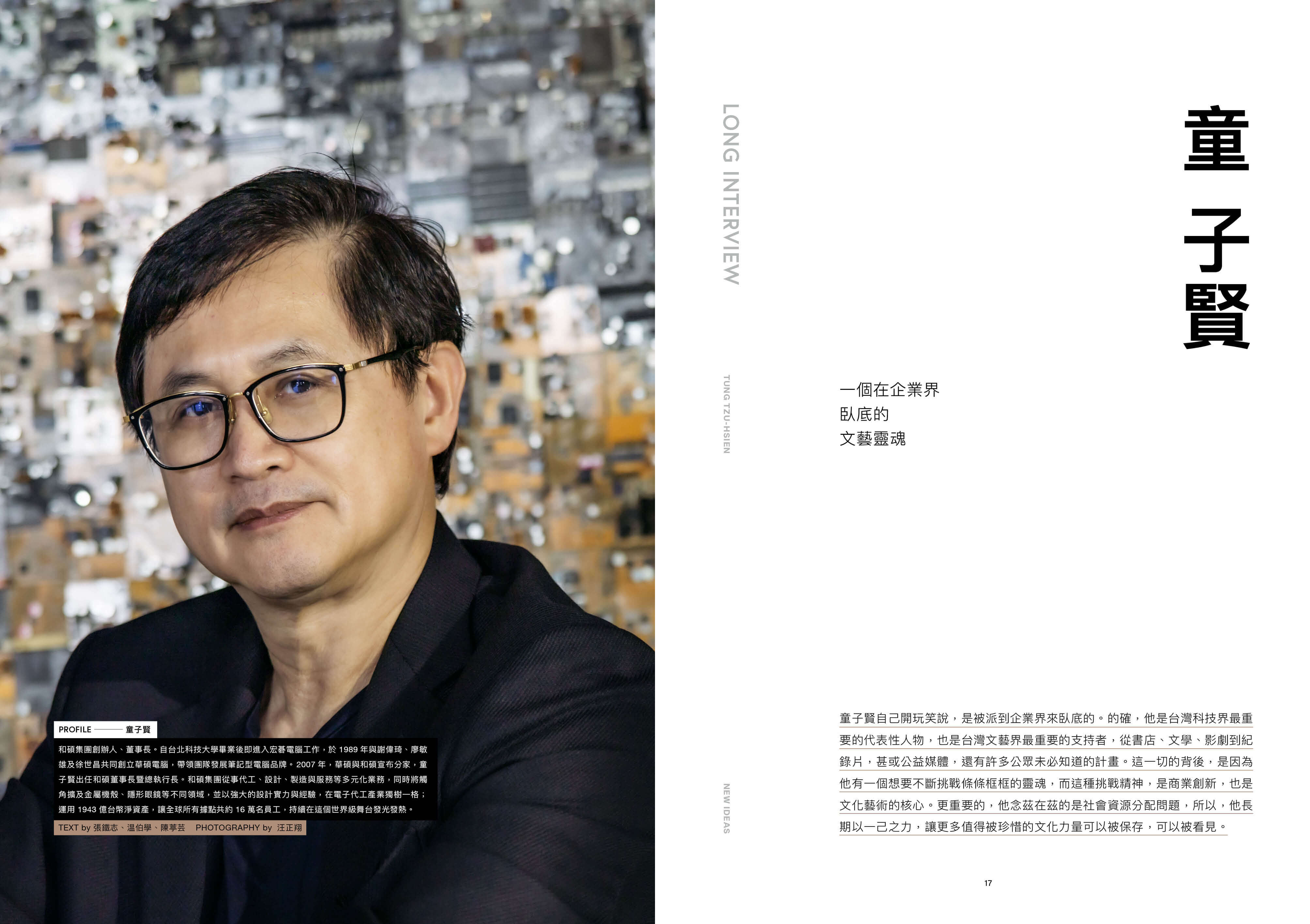 EDUCATION 12 在學習中成為更好的人⚫台灣教科書的內容與美學新革命 LONG INTERVIEW 16 童子賢⚫一個在企業界臥底的文藝靈魂 MY WAY 26 劉軒⚫勇闖創業的人生學院 轉動正向力量 |