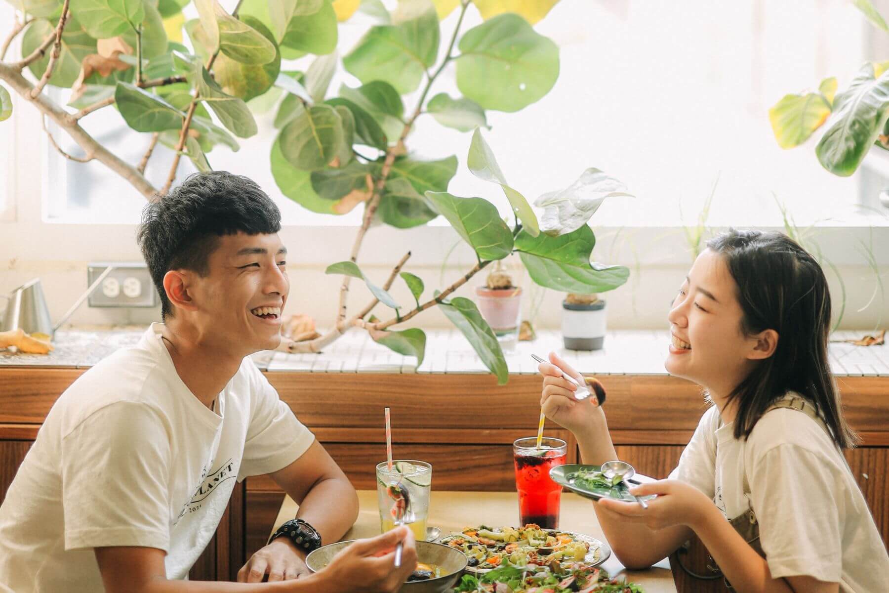 情侶檔YouTuber「找蔬食 Traveggo」認為吃素是「對地球問心無愧」。(攝影/蔡傑曦)