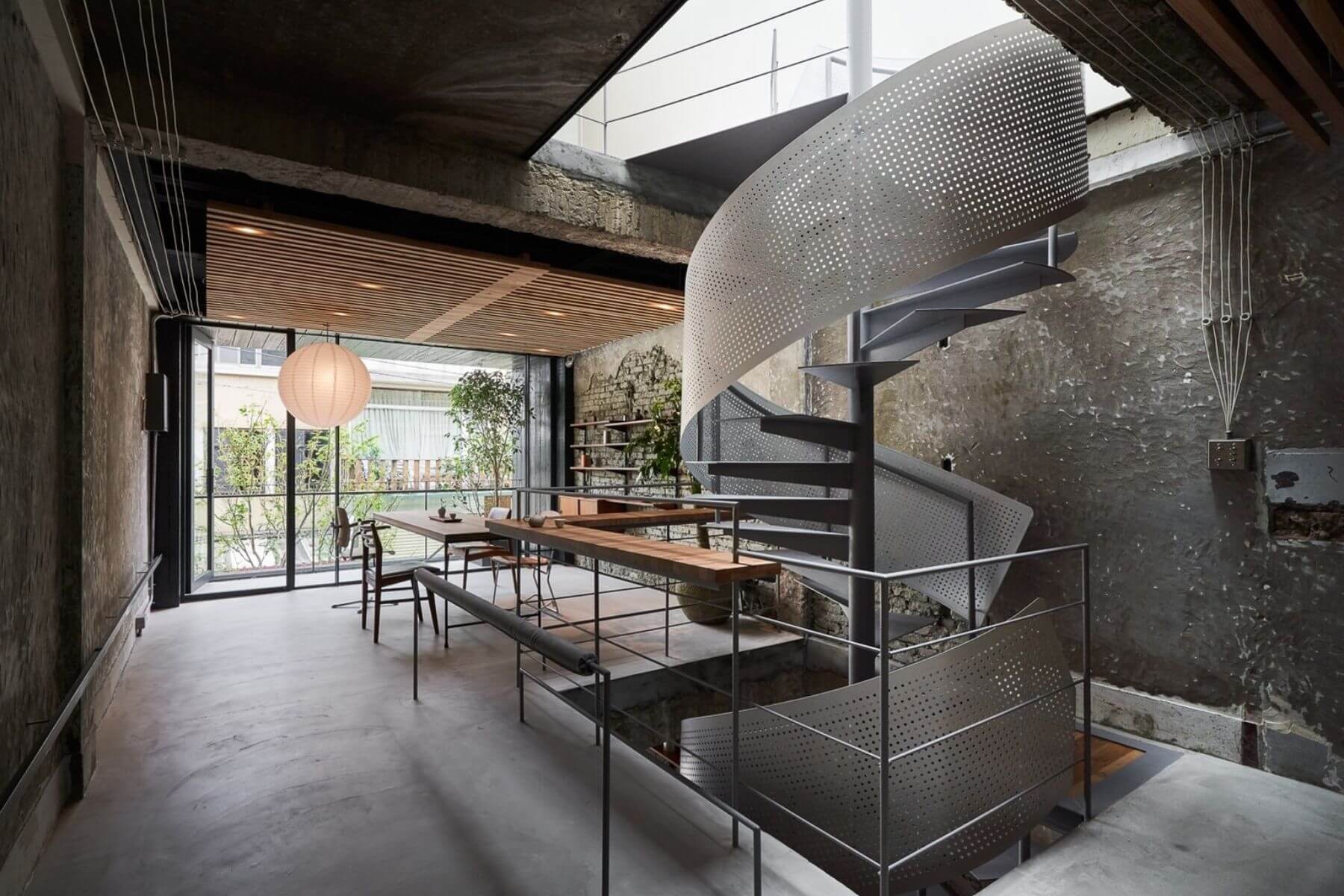 「簡化空間,讓飲茶空間透明化,才能讓年輕人敢走進來。」Scott說。兆兆的空間沒有過多裝飾,以冷灰調的水泥牆與溫潤的木質為主,院前植有唐楓、二樓以桂花與竹點綴,中庭挖空讓陽光與風得以穿透;烘焙茶的空間就藏在旋轉梯之後,五座爐子燒著香氣。