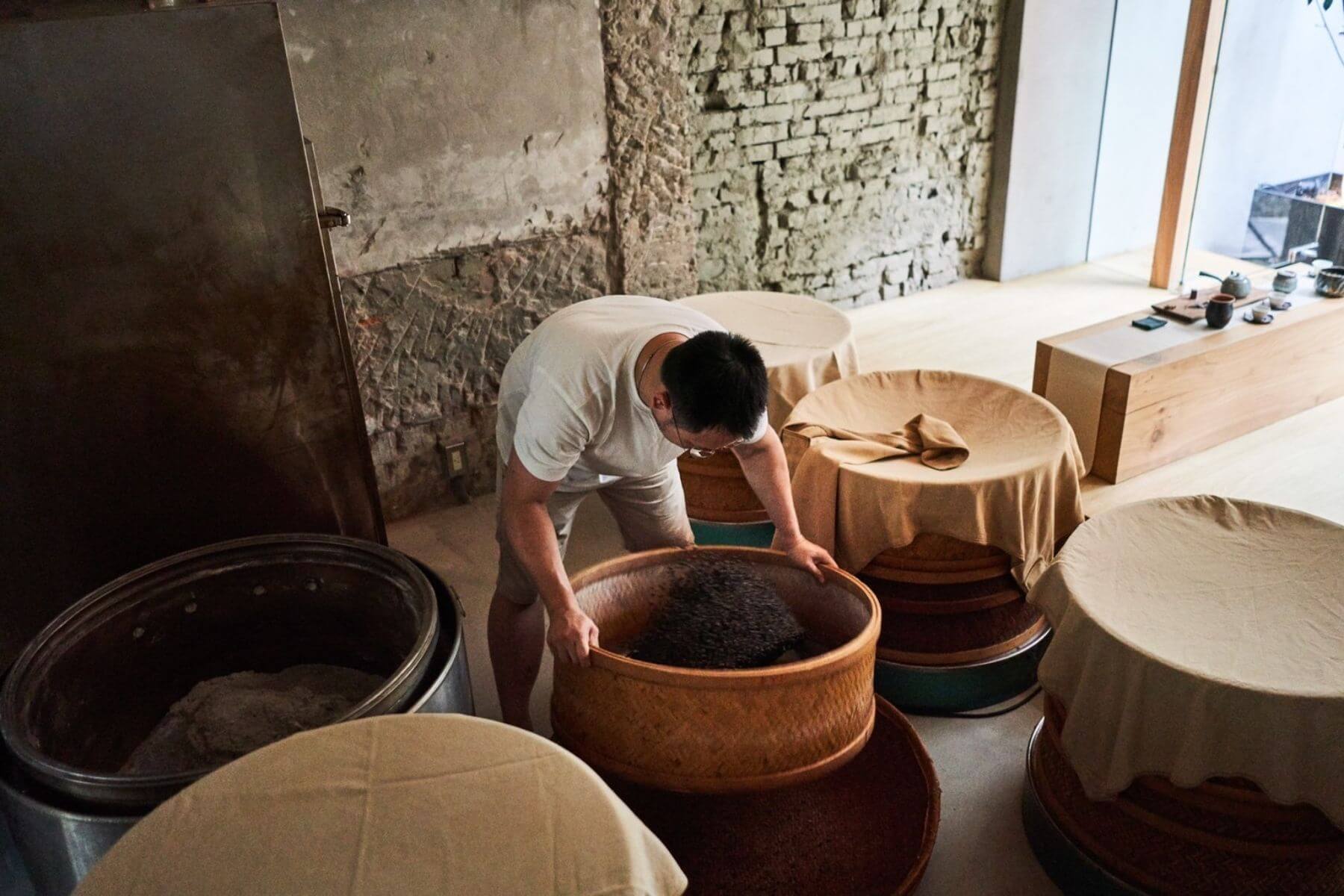在一樓後方的烘茶空間內, Scott正在整理茶葉、簡單地將茶焙香。