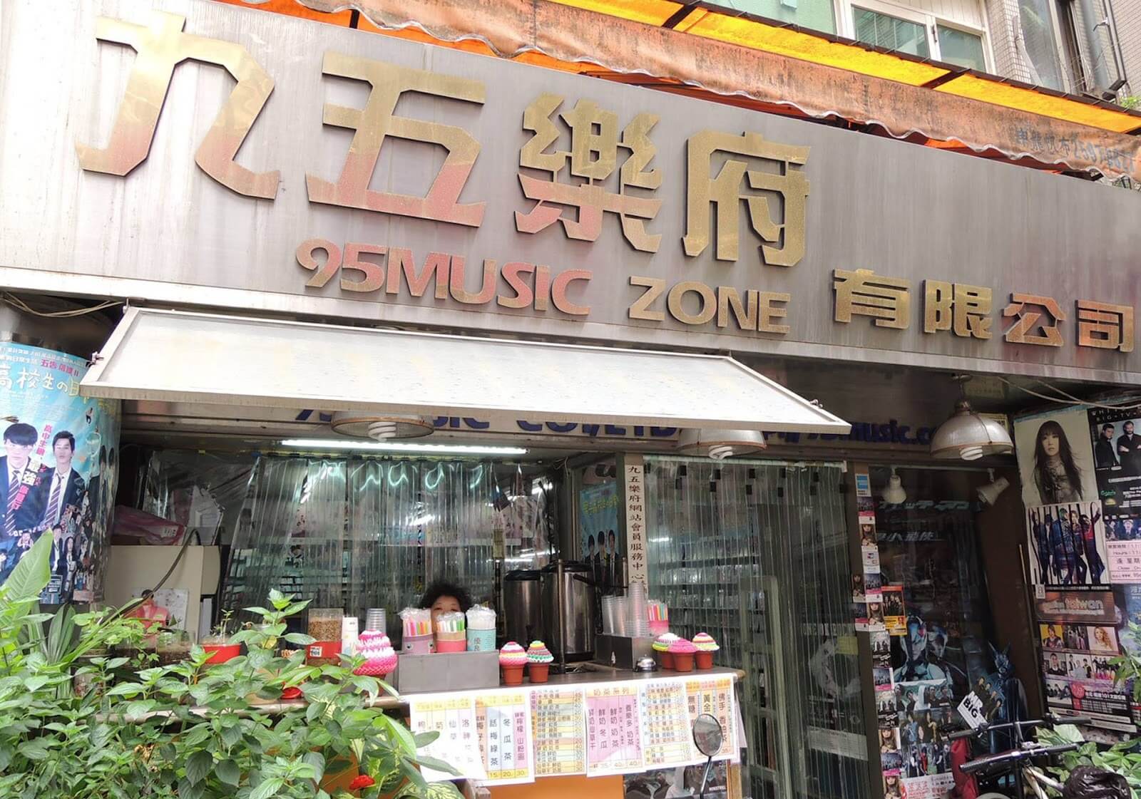 九五樂府創立於1976年,為台北最老字號唱片行之一,專賣日韓唱片及明星周邊商品,實惠的價格吸引不少哈日、韓族時常來撿便宜。此外,進入唱片行前,門口陳設著原為老闆無心插柳,飄來陣陣茶香的古早味飲料攤販,後因飲料價格實惠而爆紅,也被稱為「一家被茶飲耽誤的唱片店」。