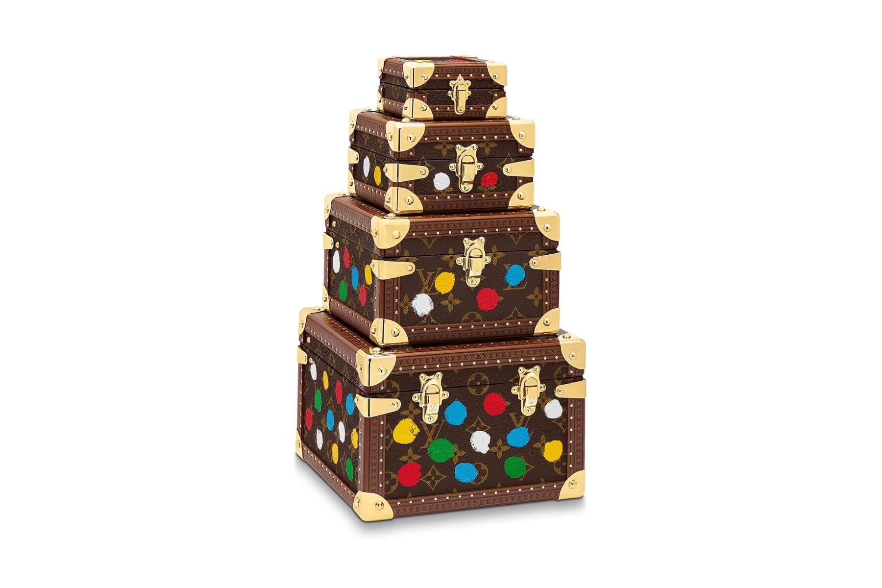 路易威登 x 草間彌生彩色圓點迷你硬箱塔。