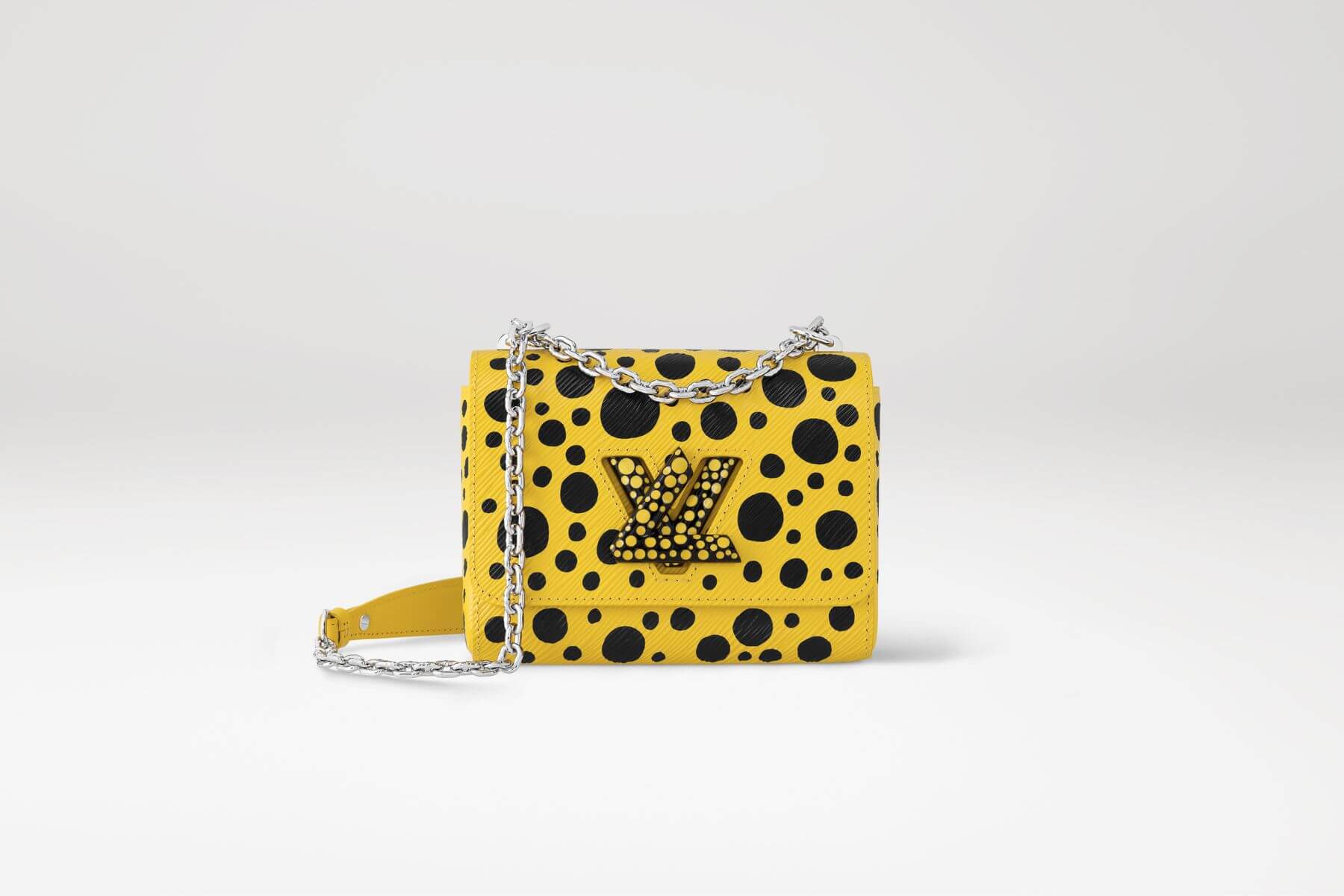 路易威登 x 草間彌生Twist PM黃色鍊帶肩背包。