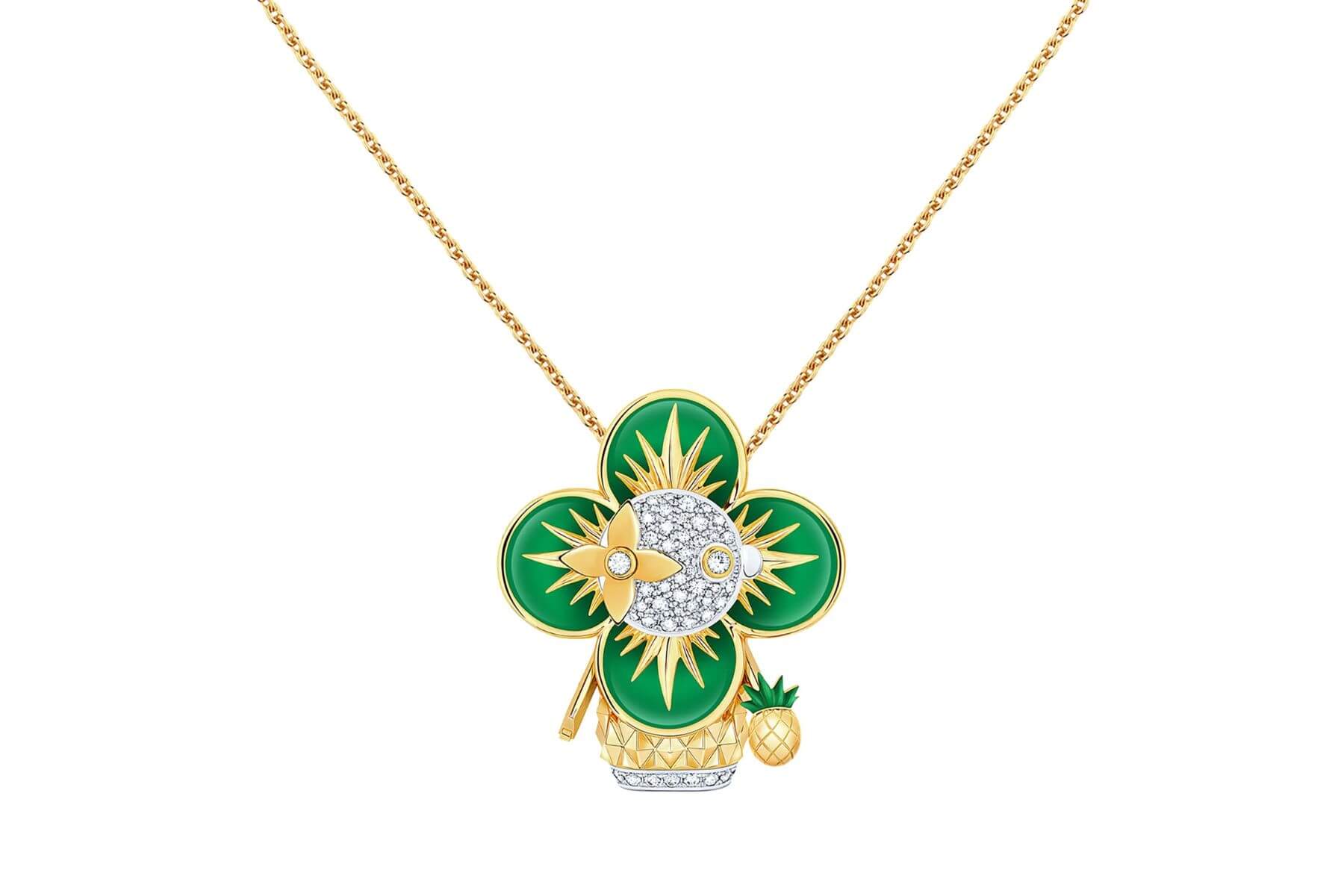 Vivienne Pineapple 黃K金、白K金及亮漆配鑽石吊墜。