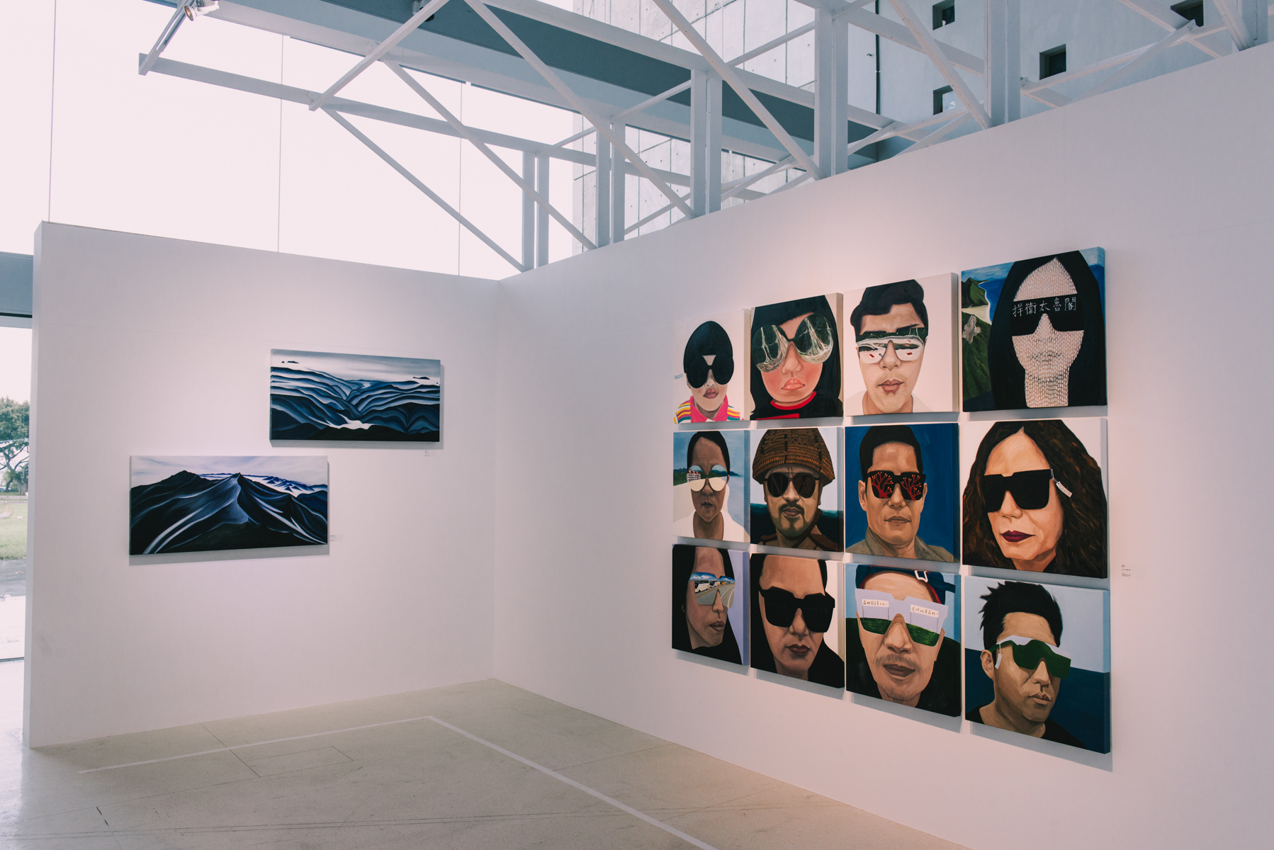 以參展藝術家Idas Losin的系列作品〈我看見〉為例,藝術家筆下的山林畫作,覆蓋一枚佔據偌大篇幅的白色鈕扣,鈕扣代表著語言、族群或個體的歷史,穿過鈕扣所見的台灣山景,象徵泰雅族人「向外看」與「向內看」這兩種視角的動態關係,也象徵著土地山林每逢天災受到土石流侵蝕覆蓋的真實景況。