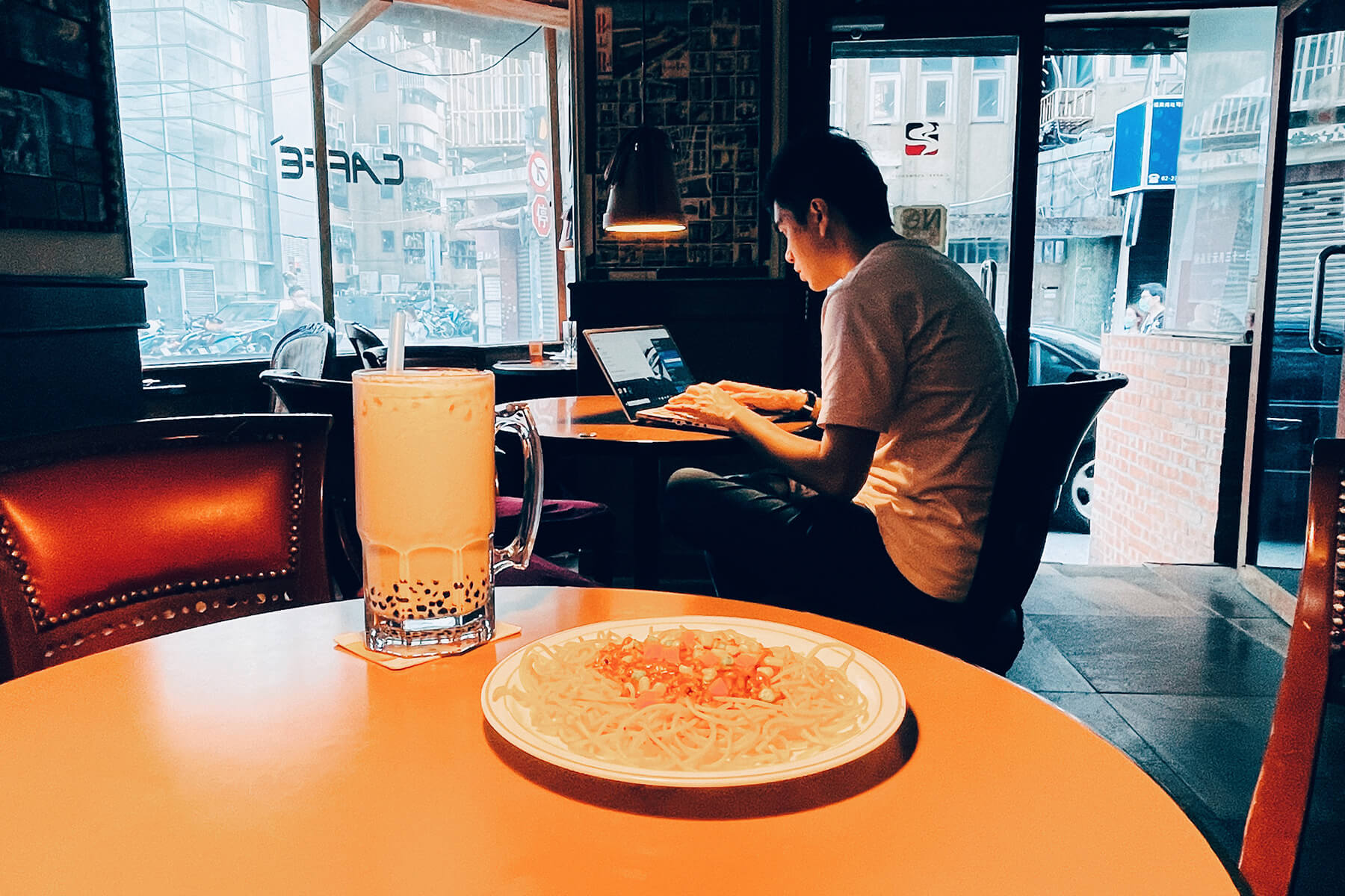 雪可屋的義大利肉醬麵與珍珠奶茶是難以忘懷的經典(圖/黃銘彰提供)