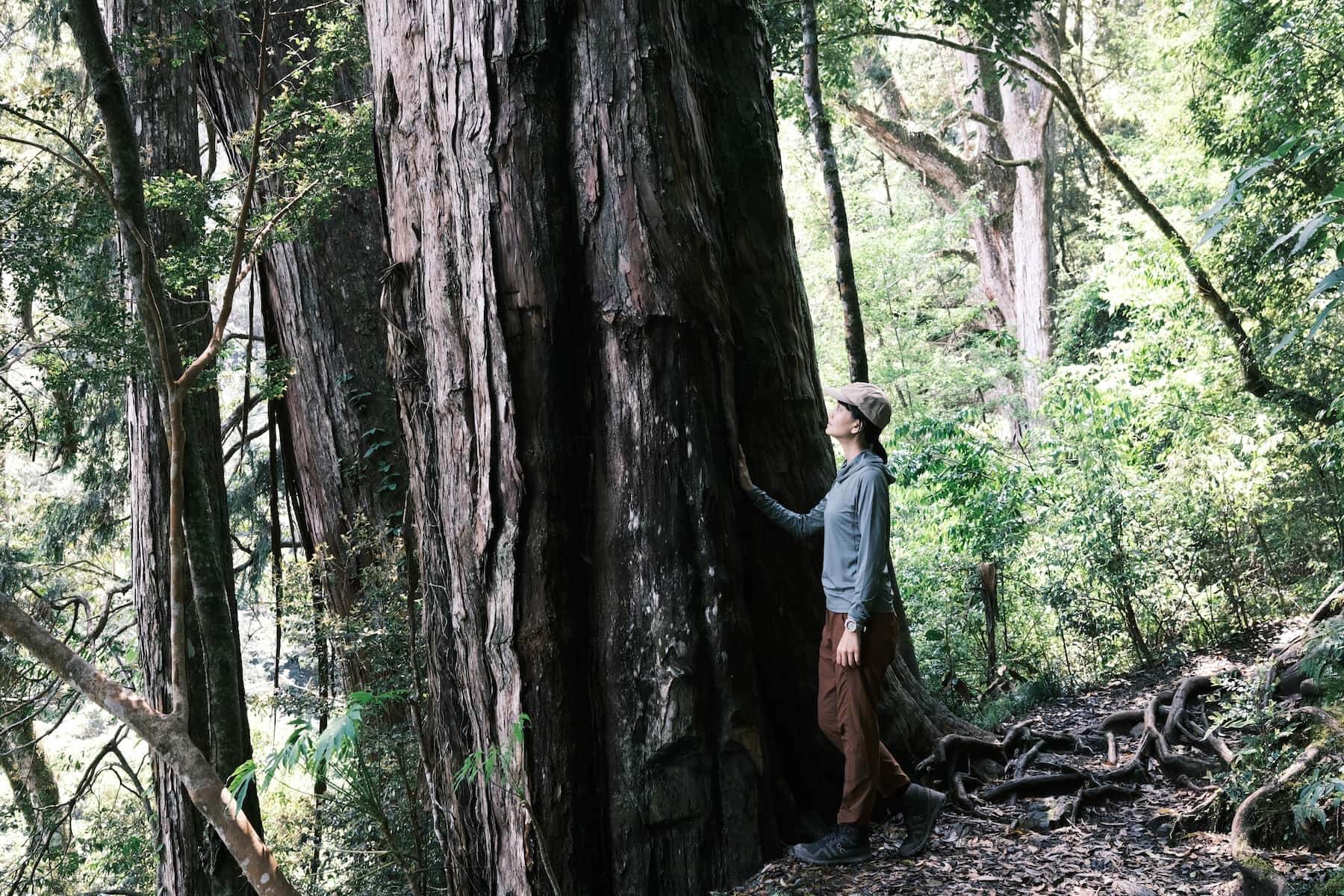 團長致潔在發想期間走訪各地檜木,在鎮西堡步道上體會神木群的力量。