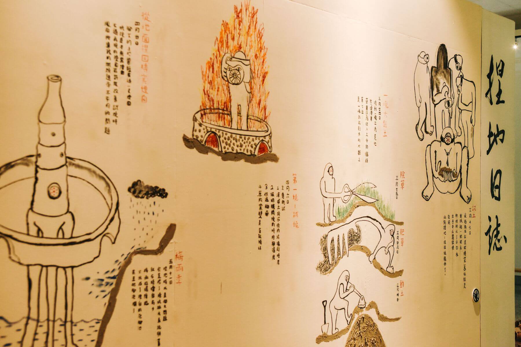 陳瑋軒以繪畫日記形式記錄著燒陶過程。(攝影/PJ Wang)