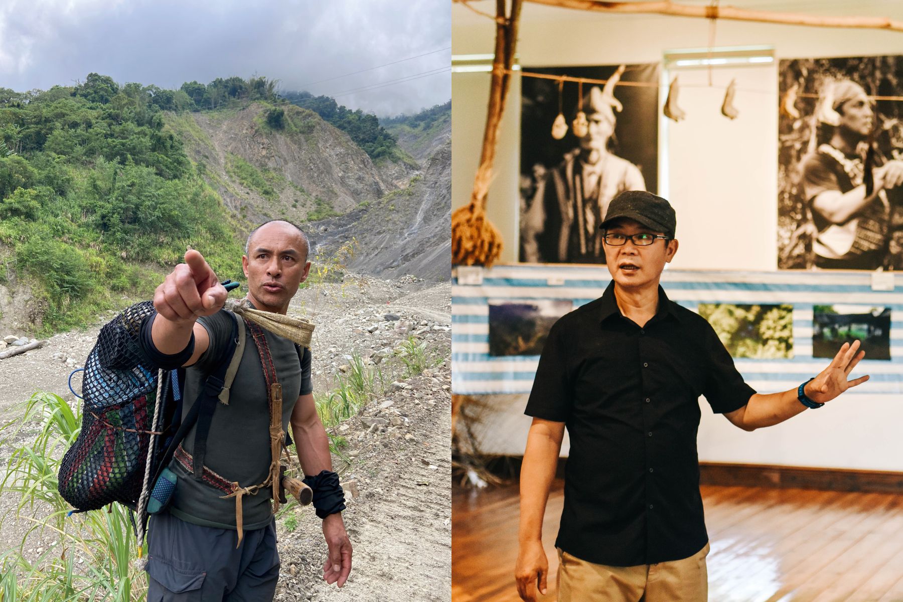左圖:鄒族獵人安孝明。(攝影/龔卓軍);右圖:2022 Mattauw大地藝術季總策展人龔卓軍(攝影/PJ Wang)