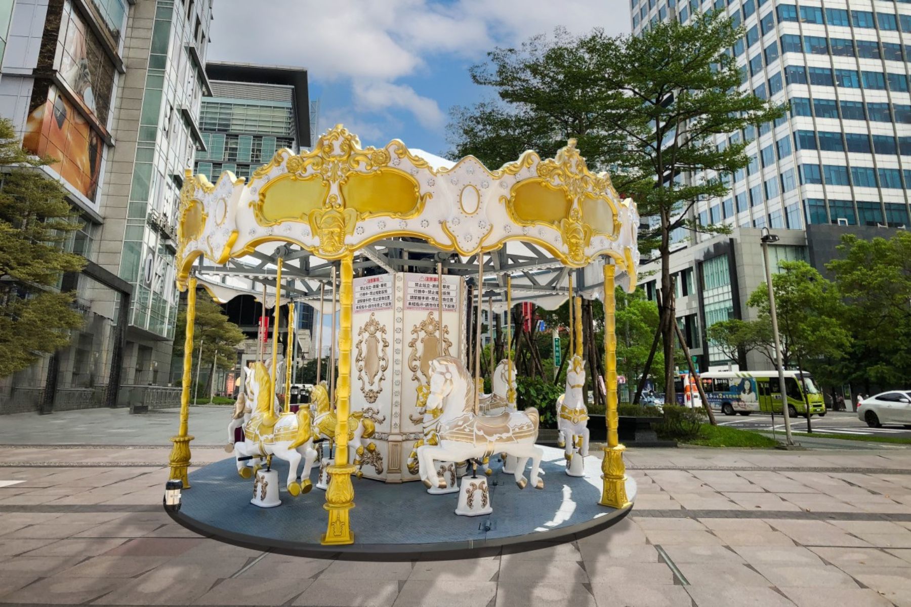 而戶外廣場另一大重頭戲即是夢幻摩天輪和旋轉木馬等大型遊具驚喜登場,想像在五光十色的信義都會鬧區,伴隨著璀璨的燈光與浪漫的氣氛,找回童心的單純快樂。誠品會員只要憑當日不限金額消費銷貨明細,即可搭乘摩天輪/旋轉木馬乙次。