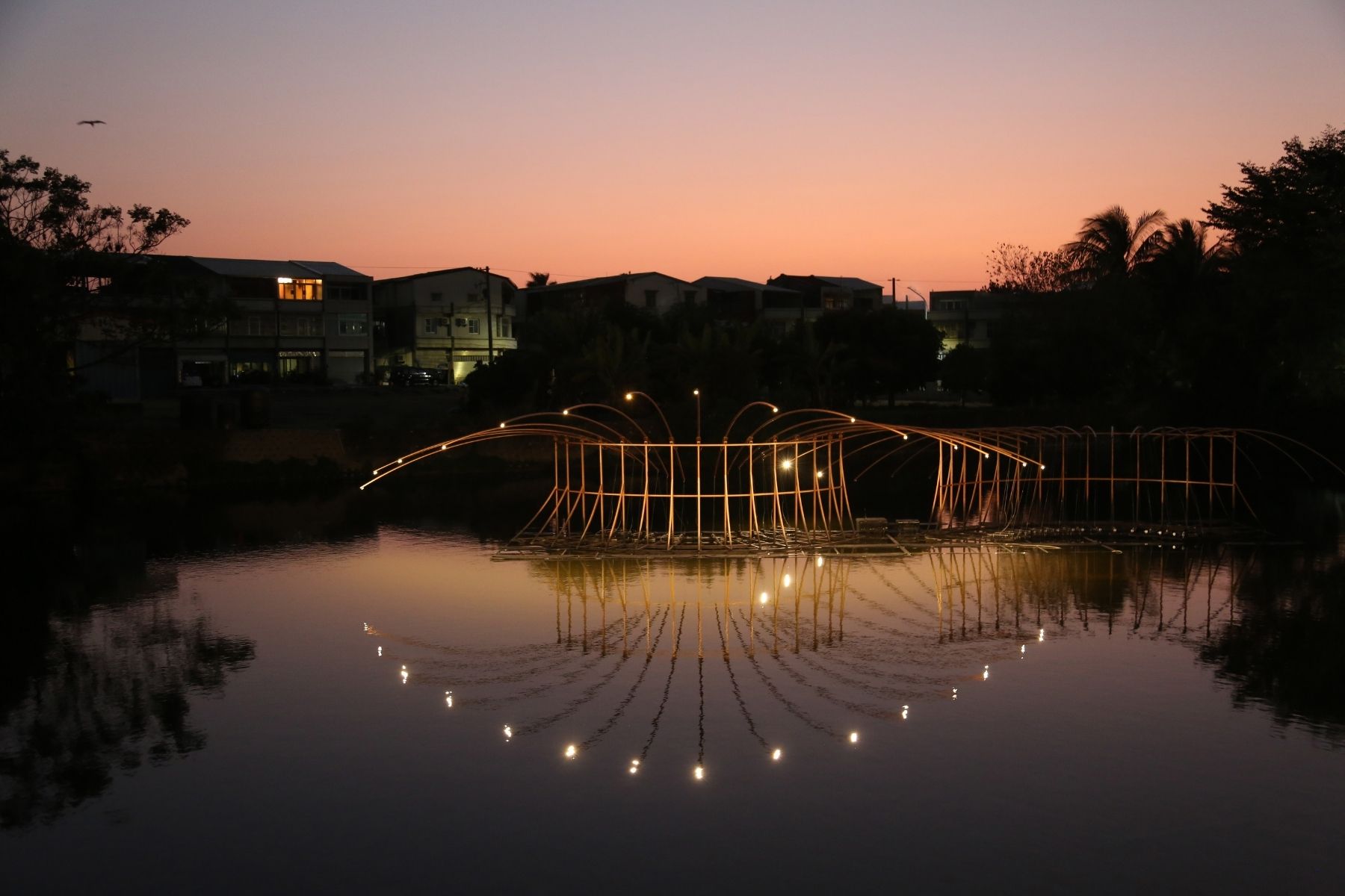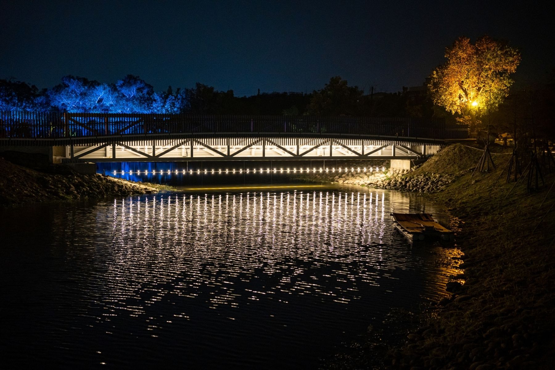 此外,大聲光電、姚仲涵、曾睿彬聯手打造的《光電獸#24 蜂炮城》,也是本屆月津港燈節的一大亮點。該作品結合在地特色的蜂炮元素,運用親水河道一端甫完成的渡槽橋,在聲光展演下,帶出蜂炮炮城意象。在同一水域,還有作品連年入選荷蘭阿姆斯特丹燈節的台灣藝術團隊「有用主張」,打造尺幅為歷屆最大的大型裝置藝術作品「運用幻象-裂縫」,視覺效果亦相當震撼。