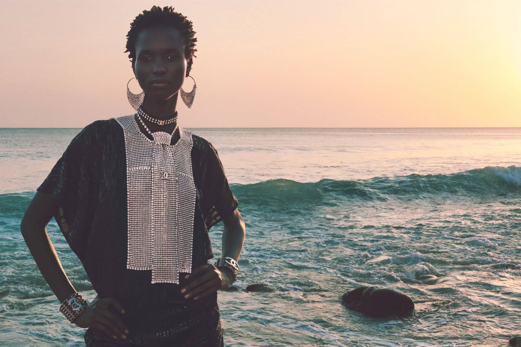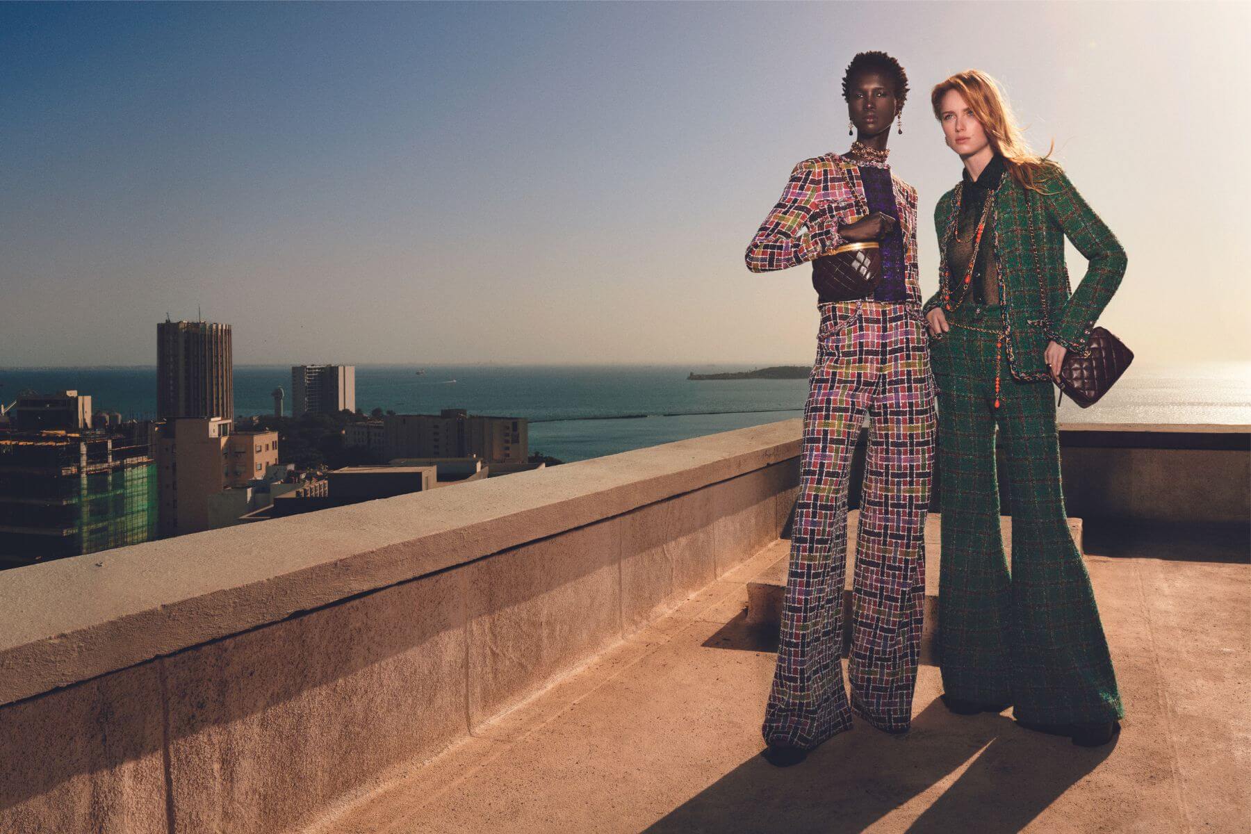 從 Les Almadies 沙灘漫步欣賞城市寧靜海景到陽光充足的屋頂露臺,再到寬敞明亮穿透感十足的達卡前司法宮,電影場景般的一系列影像作品讓衣索比亞籍模特兒 Amar Akway 和荷蘭籍模特兒 Rianne Van Rompaey 的倩影完美留駐,同時彰顯此系列兼容並蓄的特質,與達卡的人造與自然環境相輔相成。建立起飽和色彩與質地的細膩對話,讓香奈兒品牌符碼在原始質樸的氛圍襯托下更別具風格。