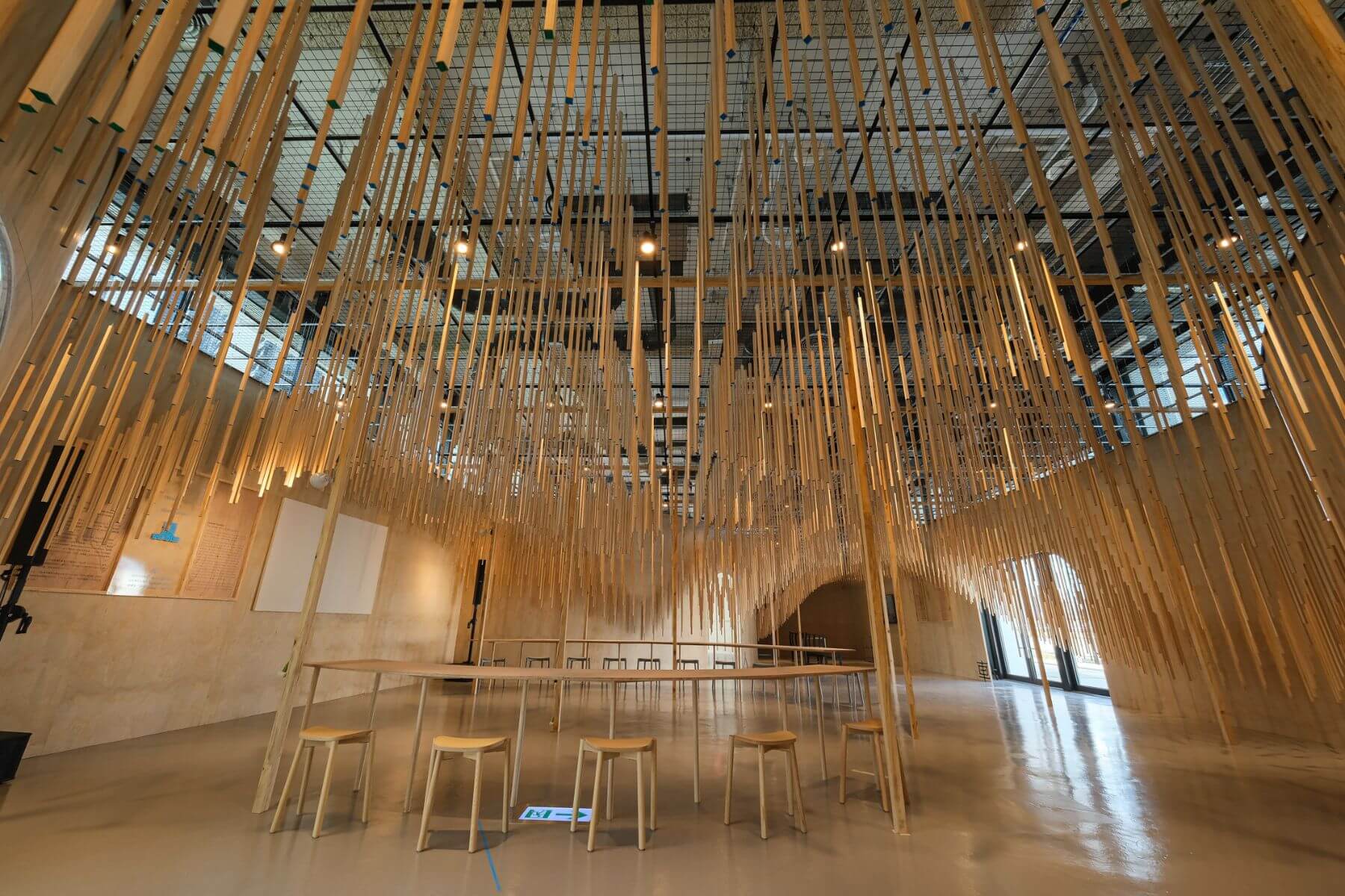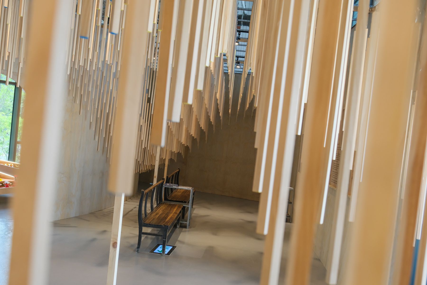「本埠設計」建築師蔡嘉豪將六千多條木紋夾板做為嘉義館內的重要象徵,代表擁有六千棟木構建築的「木都」嘉義。(圖片/台灣設計研究院提供)