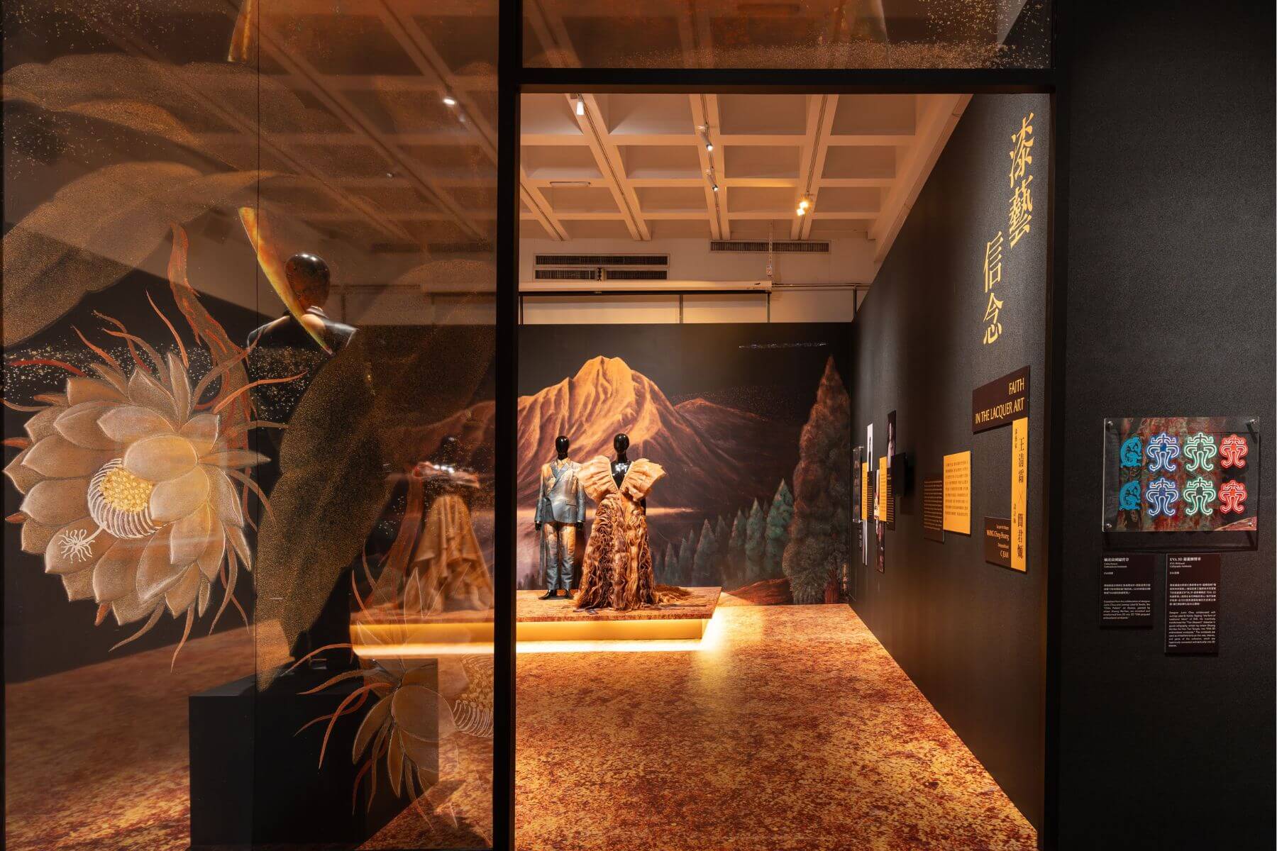 「漆藝信念」以人間國寶漆藝家王清霜作品轉化為舞台式場景,完美呼應設計師簡君嫄透過塗繪時裝致敬漆藝:「繩結工藝超靈格」以異材質烘托傳統繩結藝師陳夏生作品,襯以設計師魏子淵用回收再製的永續繩結編織瑰麗服飾;「紙雕工藝與龍共舞」使用造型景片重現紙雕工藝家陳一中作品之美,搭襯設計師許艷玲所設計具雕刻立體層次的時裝等。展場即秀場,反映出工藝與時尚融合時所迸發的磅礡氣勢。