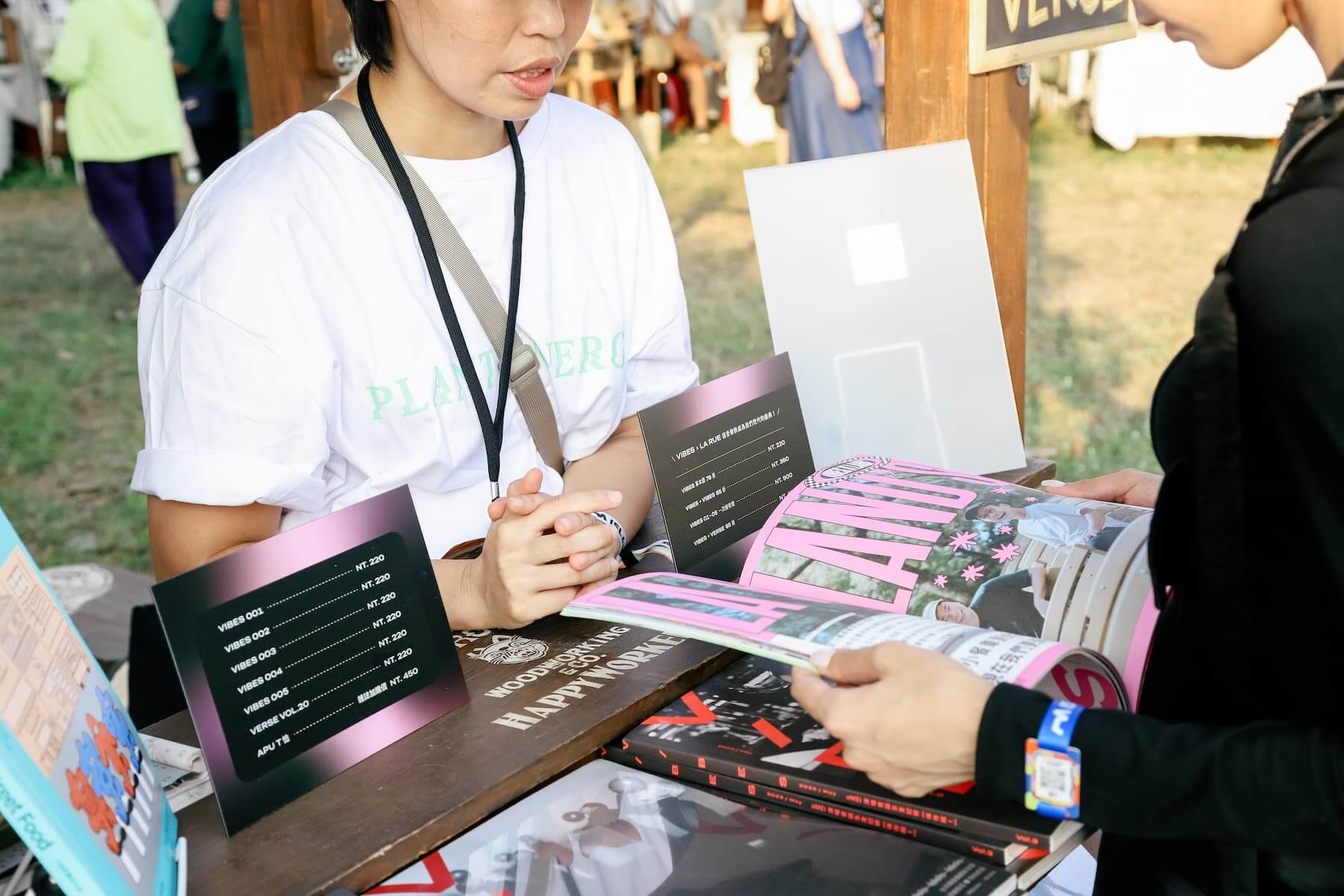 《VIBES》也在此次「ISLAND’s」首次出攤。攤位以獨特的書報攤形式設計,佇立在陽光灑落的大樹底下,成為兩天下來島民們打卡的熱點之一。此次VIBES小隊帶著熱騰騰最新出刊的《VIBES》、《VERSE》南下,其中《VIBES》第5期即以「讓音樂祭成為這個世代的祭典」為主題,梳理台灣音樂祭的過去、現在至未來的可能性,獨家報導了「ISLAND’s」籌辦、設計過程以及表演樂團,討論為什麼在網路串流當道的現代裡,我們仍然熱愛且需要一場音樂祭。
