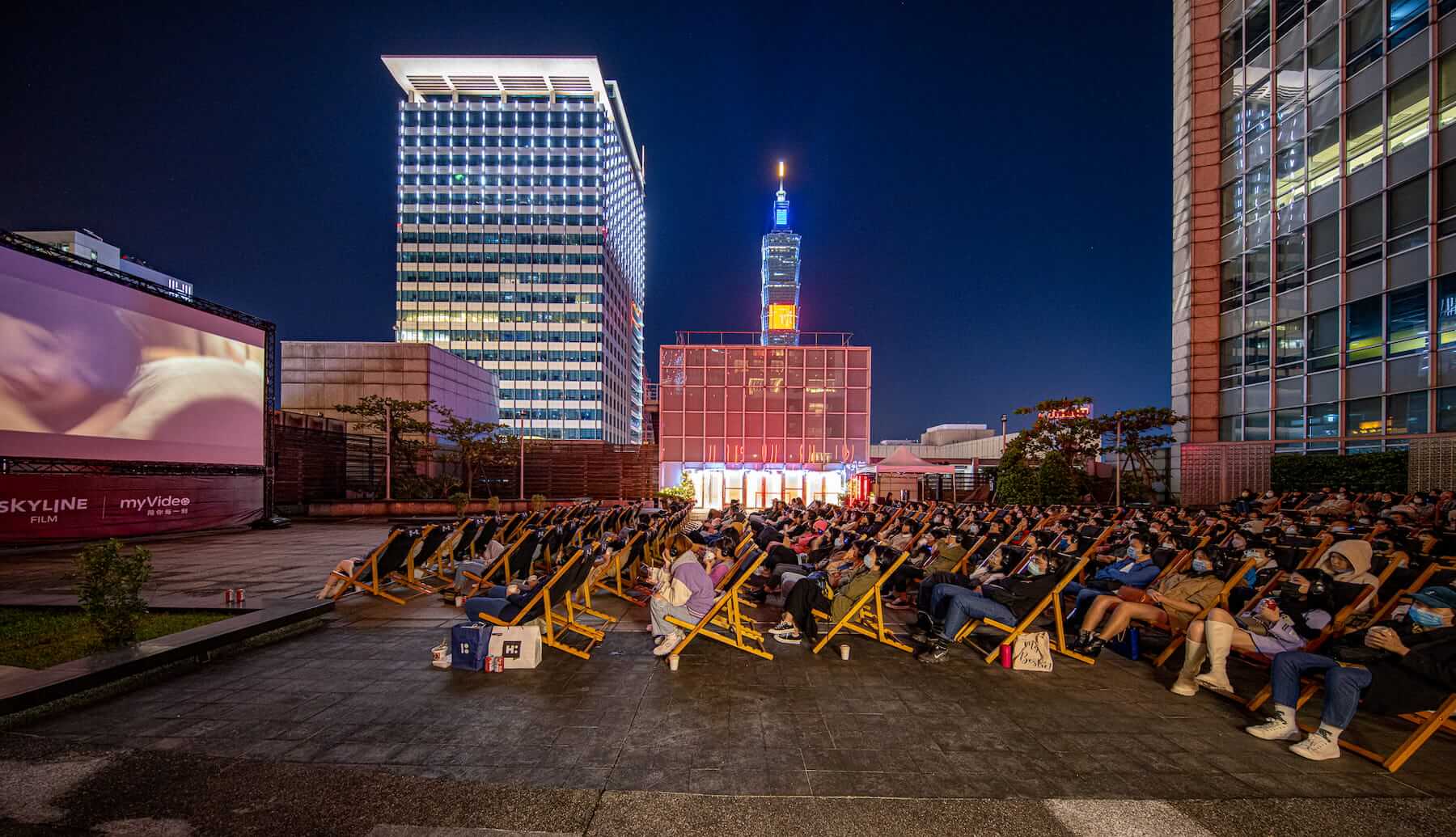 將快車道變身為「一夜影展」電影院,邀請民眾一起躺在仁愛路林蔭大道上觀看電影,走進各種青春吶喊與叛逆中。(圖片提供/左腦創意)