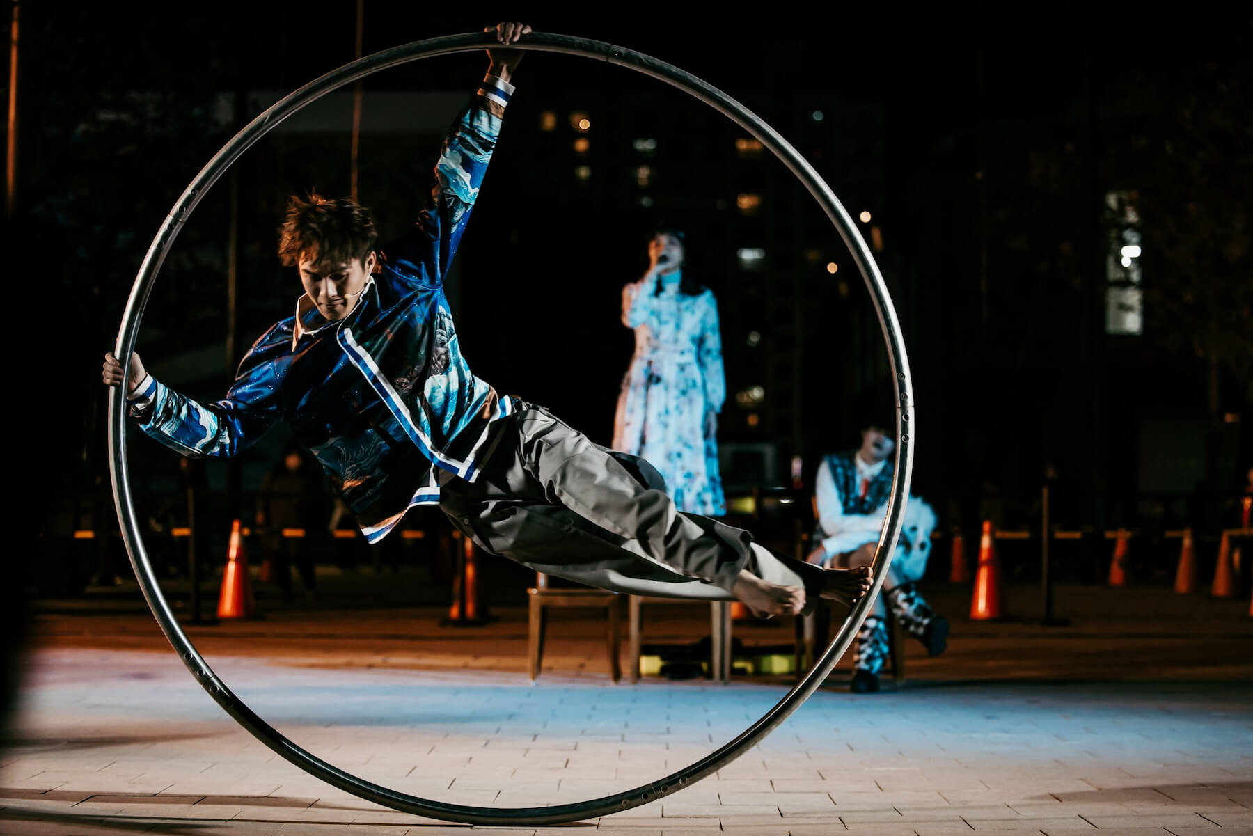白晝之夜用藝術開箱市議會,音樂結合馬戲肢體的演出,以隱喻的手法展現議事民主。(圖片提供/左腦創意)
