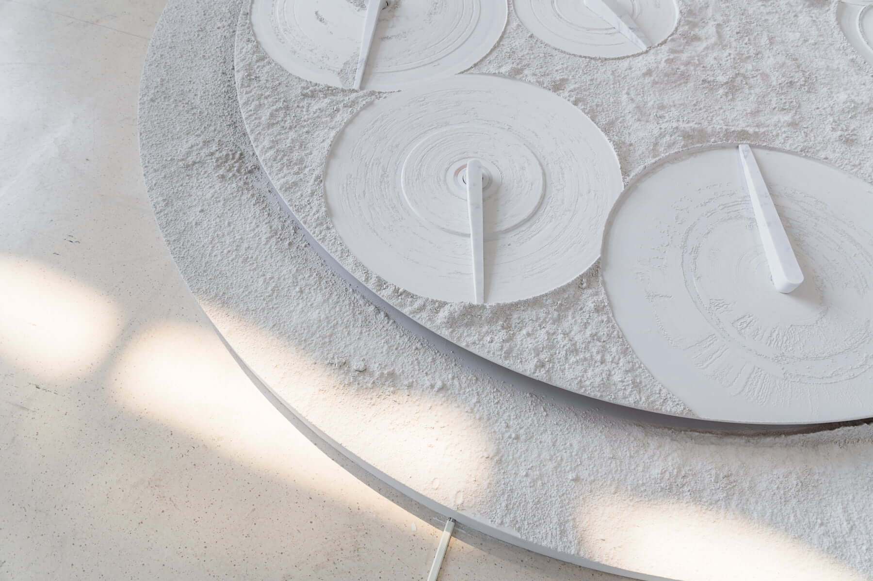 南非藝術家狄龍・馬什(Dillon Marsh)《石頭的總和》則透過CGI(電腦生成圖像)技術,創建一個虛擬的大理石球體,並將其合成回來源的礦場中,通過將這種提取的資源作為一個整體來展示,產生強烈視覺衝擊效果,收集台灣大理石於世界中流離的認同,使之成為一座提供新視角的紀念碑。