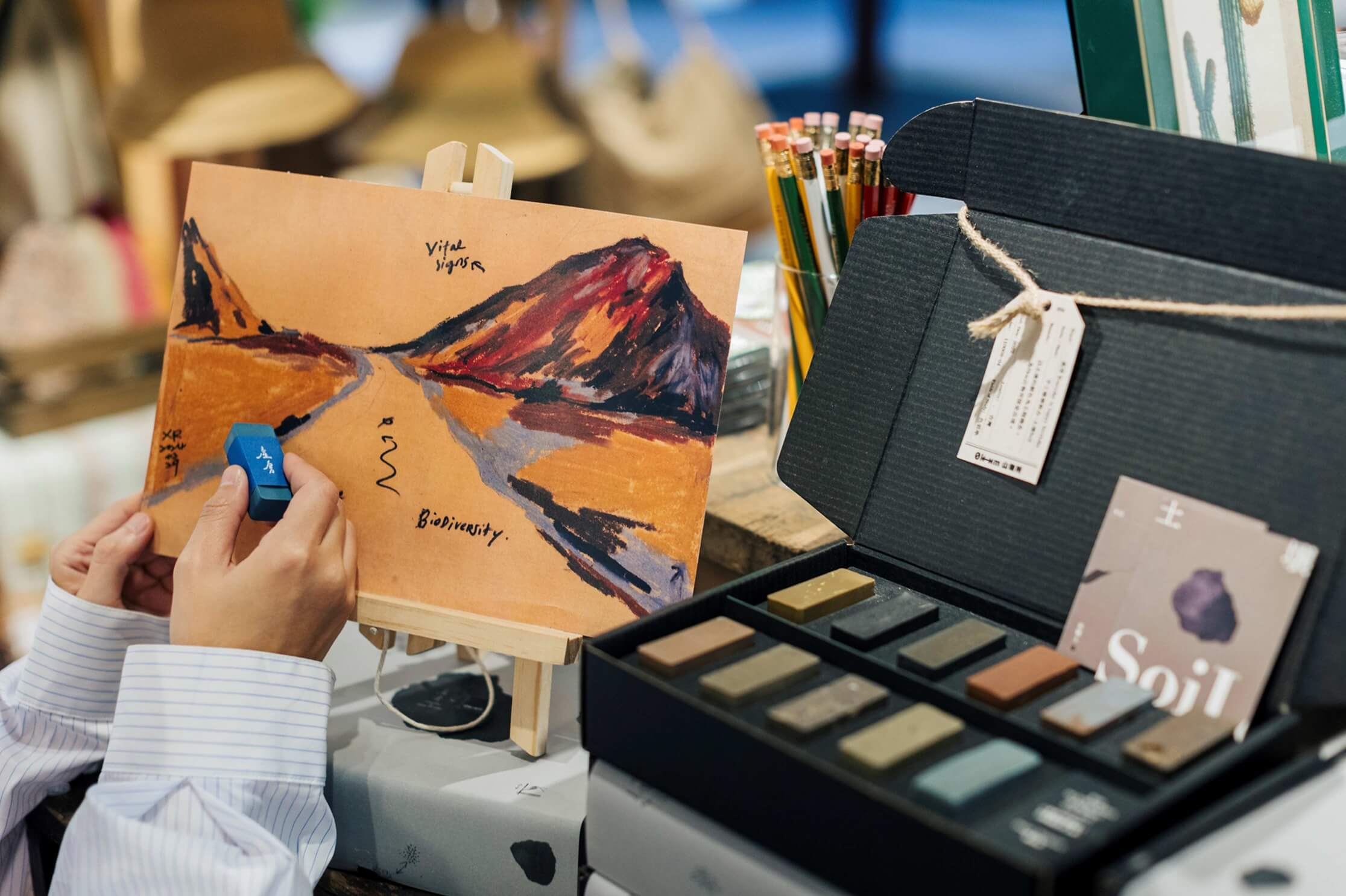 無論是聯名的咖啡甜點、土壤顏色蠟筆,以及各種環繞山林的生活選品,何成育企圖藉由博物學的爬梳、拆解,讓大眾感受到日常生活中充滿各式各樣與山林相關的連結,進而打開大眾對於台灣山林的新想像。