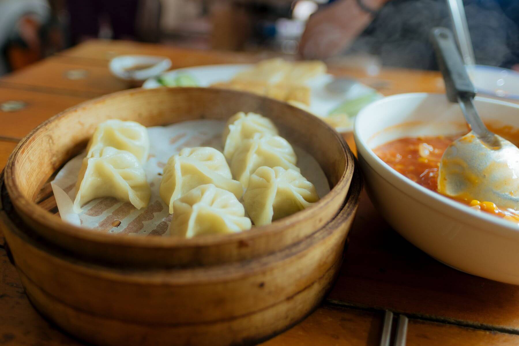 古密蔬食的招牌就是一籠顆顆像是弦月飽滿晶透的蒸餃,內包的高麗菜餡清甜爽口,沾上他們自製的辣椒,層次立刻升級。大支也很推薦他們的鍋巴,是他在其他蔬食店沒嘗過的美味。