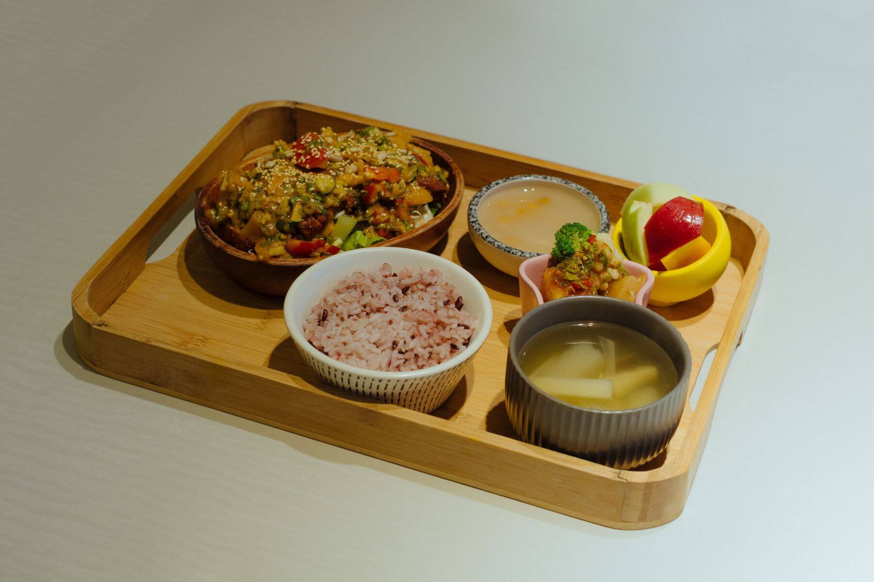 南洋風味的旅素蔬食,主打套餐式的餐點。泰式椒麻積飯好吃道地之外,還兼顧營養均衡,兩樣小菜、湯品及水果,超過六種蔬果,一餐便可以滿足一天需要攝取的蔬果量。