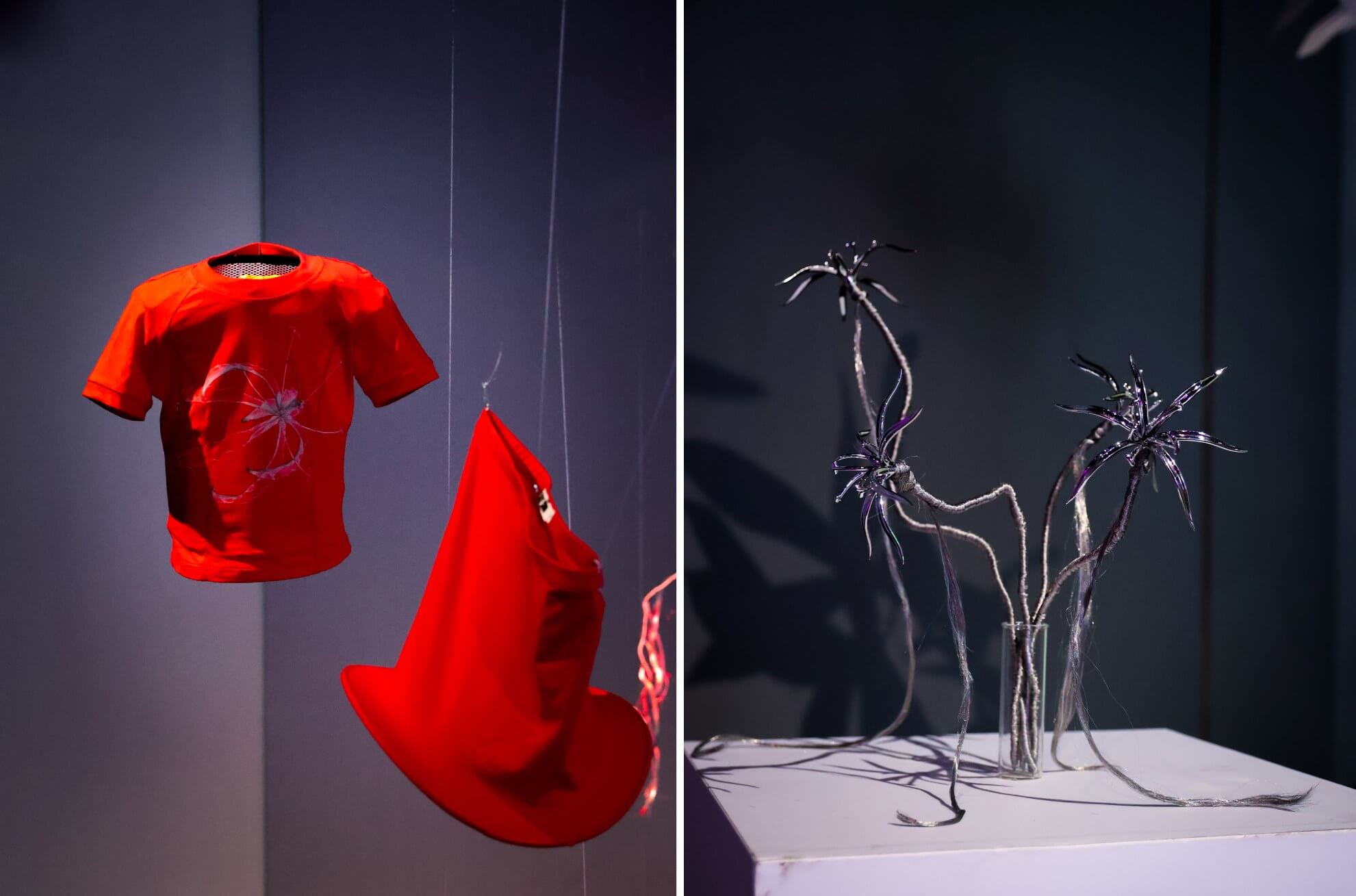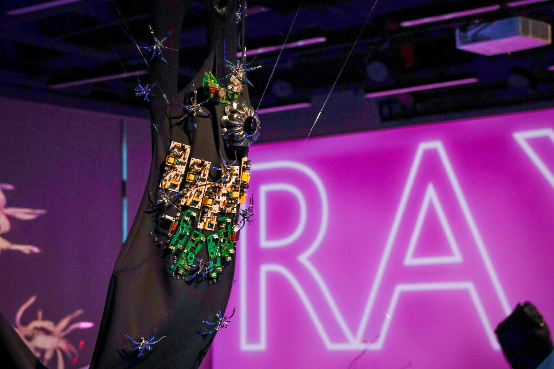 展覽以兩大核心主題「Flash」與「Flow」為概念。「Flash」象徵拆解與重構,RAY CHU將恆隆行廢棄家電零件拆解重組,結合藝術感的織物碰撞出全新火花,彰顯物件重生的可能性。而「Flow」代表自然與科技的和諧共生,RAY CHU使用魚鱗回收材質並結合3D列印技術,將自然曲線融入設計,展示生命的流動與韌性,表達科技創新如何助力推動永續發展。除展覽外,RAY CHU還親自指導兩場飾品工作坊,帶領參加者以RAY CHU SS25新系列飾品為基礎,結合恆隆行的廢棄家電零件,創作出獨具個性與永續意義的頸鍊與手鍊。