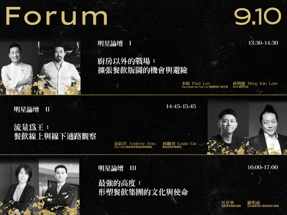 6 位業內重磅講者、3 場深度議題論壇,豪華明星陣容帶領你精準掌握餐飲界脈動