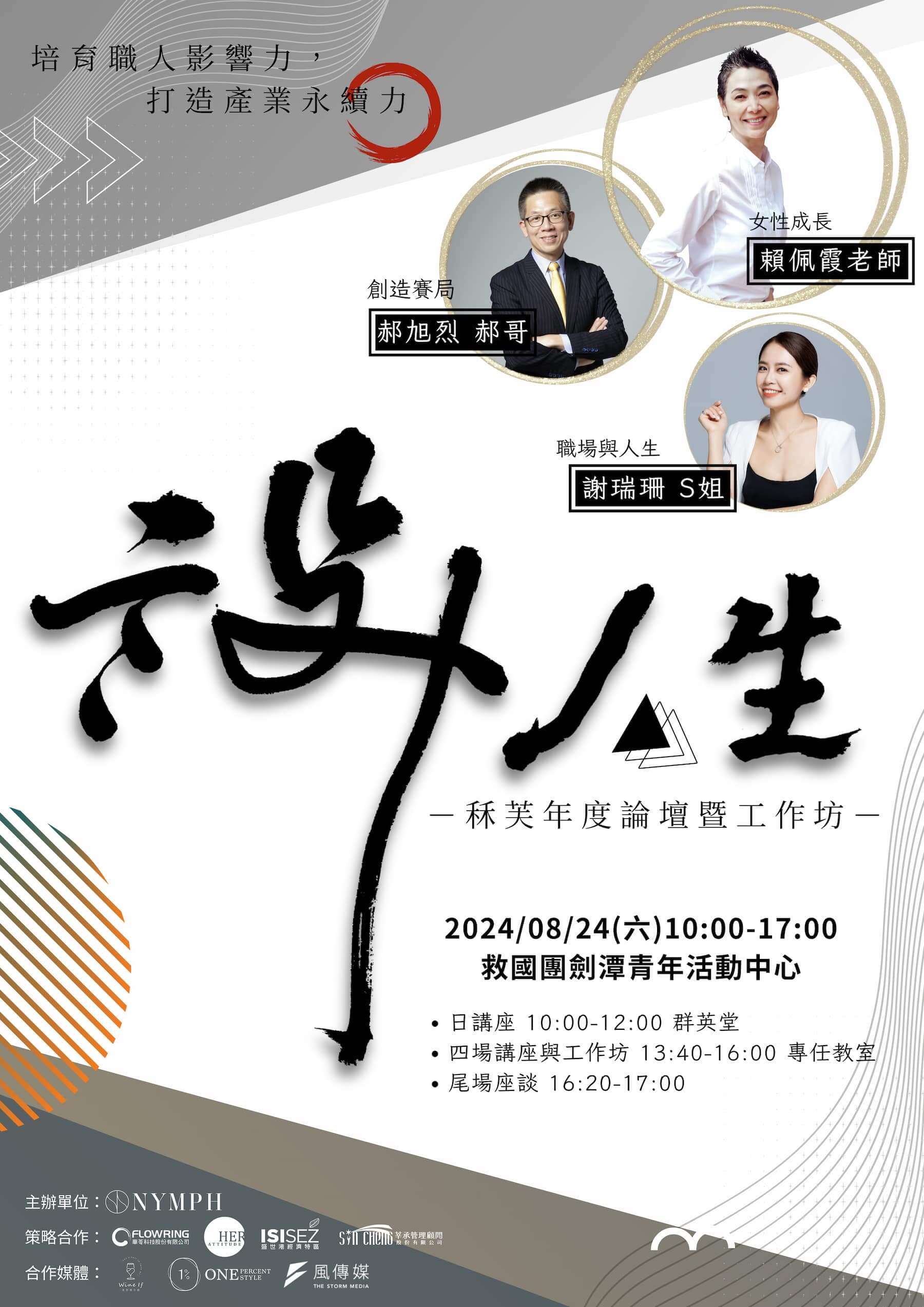 今年八月秝芙職人經紀推出「設計人生」論壇,以「如何設計自己的人生」為主軸,結合各產業相關議題,將建立職場影響力、持續自我成長的概念,讓參與者探索如何在職場中找到自己的強力定位,並通過積極的自我成長規劃,創造人生的無限賽局。