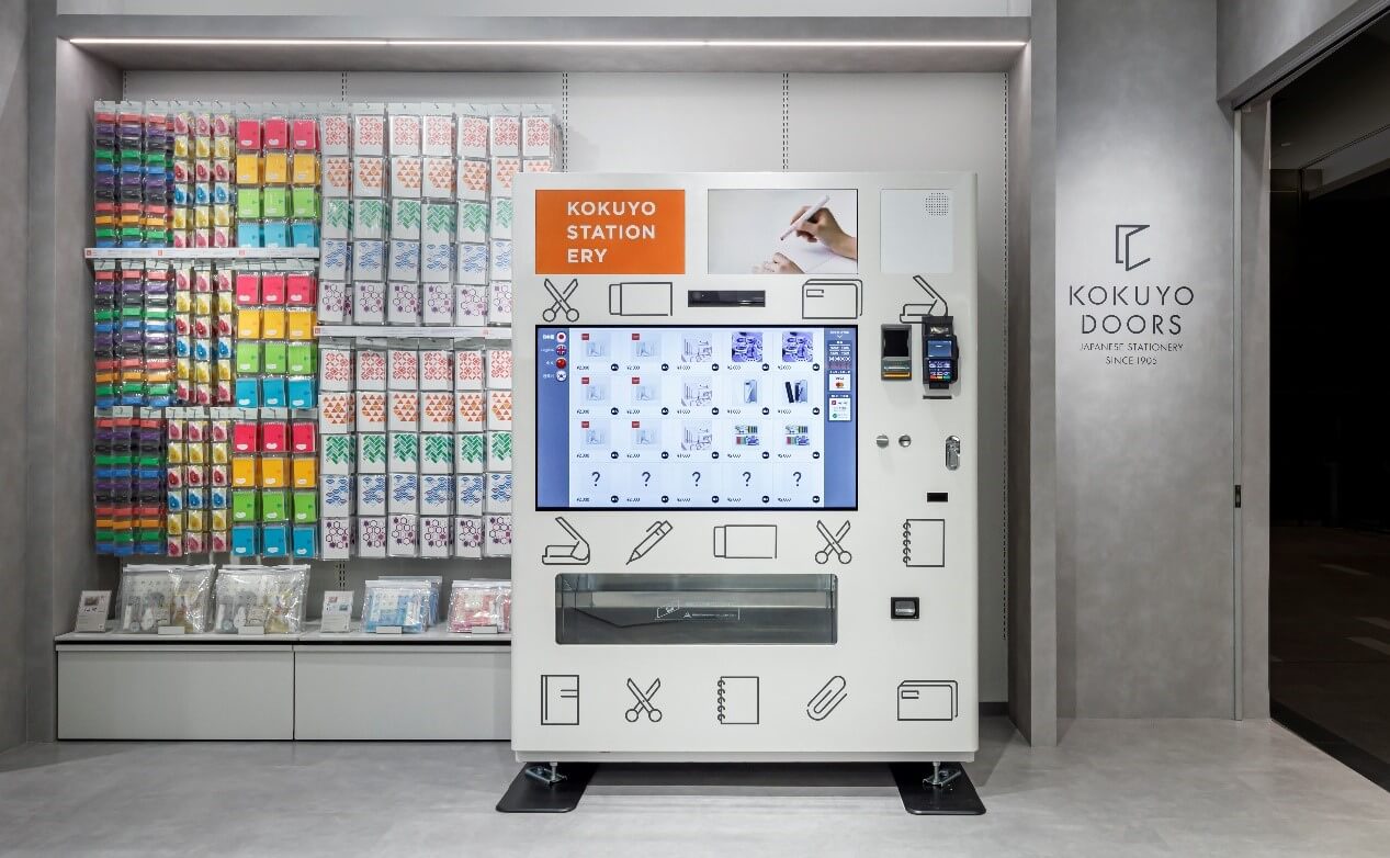 KOKUYODOORS不僅品項多樣,還特別強調體驗型購物。店內有工廠直送的Campus筆記本試寫台,以及充滿樂趣的IoT自動販賣機,支持多語言操作。販賣機配備大型觸控屏幕,顧客可邊觀看影片邊選購,增添趣味,還提供限量的獨家文具套裝,讓顧客盡享嶄新的購物體驗。