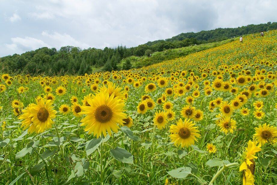 位於喜多方市可眺望會津盆地的三之倉高原,冬天是滑雪勝地,夏天則是福島縣著名的賞向日葵景點,每年的8月上旬到9月上旬,在8公頃的土地上(相當於2個東京巨蛋大小)約有250萬朵的向日葵盛開,是東北最大規模的向日葵花畑。黃色花絨毯與大自然交織出的美景,令人嘆為觀止。