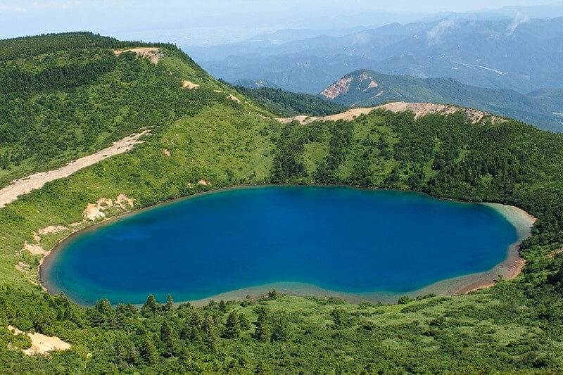 從磐梯SKYLINE淨土平停車場登山約走一個半小時左右,可從1,949公尺的一切經山山頂看到這個美麗的絕景。5月到8月期間沿途登山道路上可見到許多高山植物,是一個登山健行的好處去。