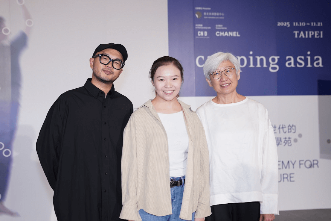 2025 Camping Asia策展人林人中(左)、2023 Camping Asia參與學員林穎(中)、北藝中心董事長王文儀(右)