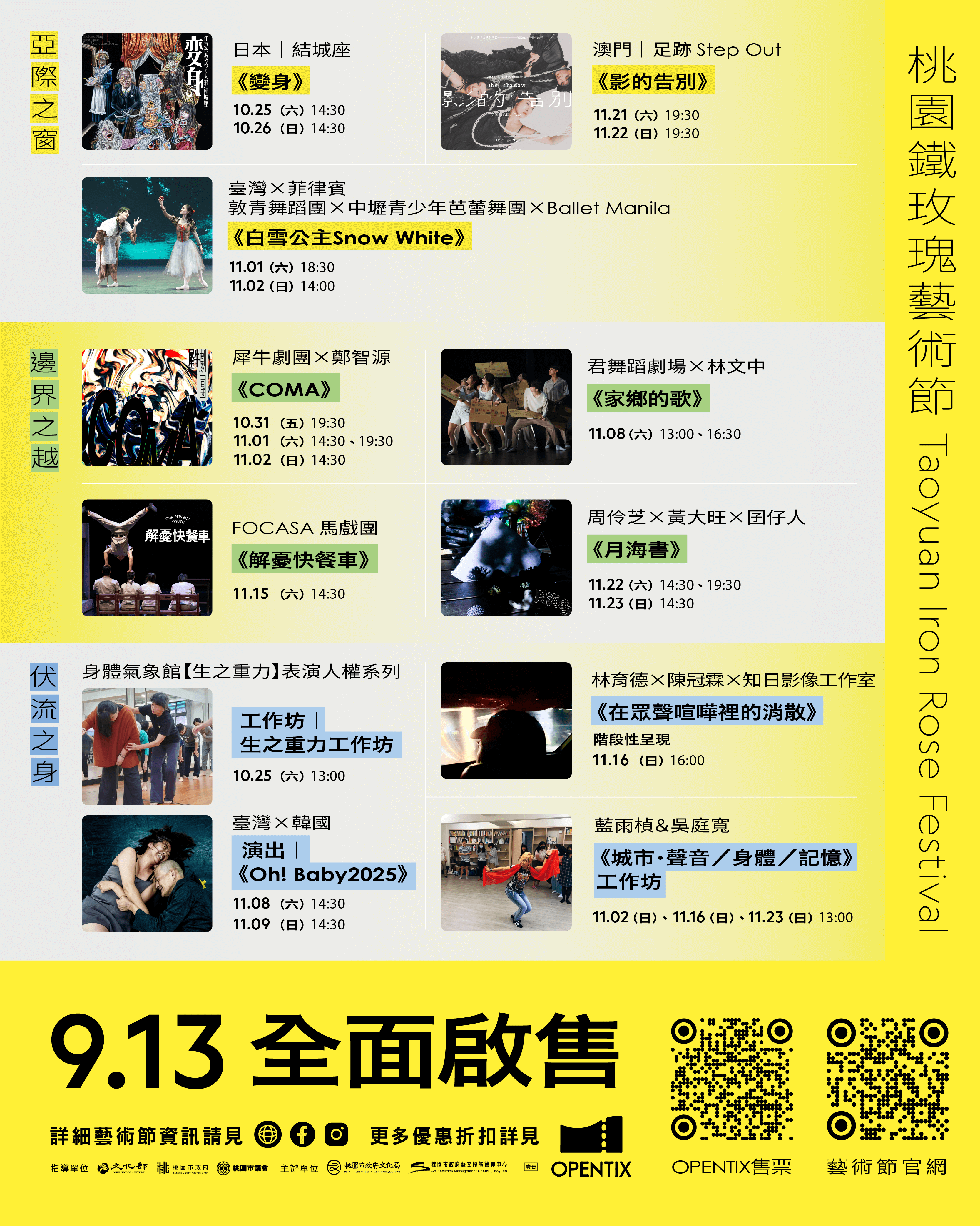 2025年鐵玫瑰藝術節從一座城市劇院的藝術節,更強調面向整座城市的,廣邀桃園地方團隊與日本、澳門、菲律賓及韓國團隊展演,串連桃園藝文特區、中壢藝術館與米倉劇場為展演場域,與桃園這座城市產生更多共鳴。