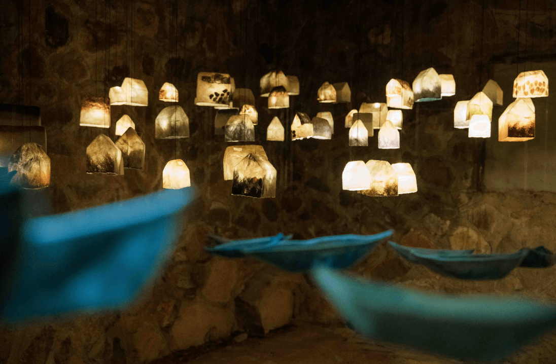 而這場藝術對話當然也少不了來自馬祖的聲音。出生於東引島的藝術家林美玲,以她對家鄉的思念,在《微光·記憶》中,用光影勾勒出老屋的輪廓,那些微弱的光,彷彿在夜裡為遊子指引方向。