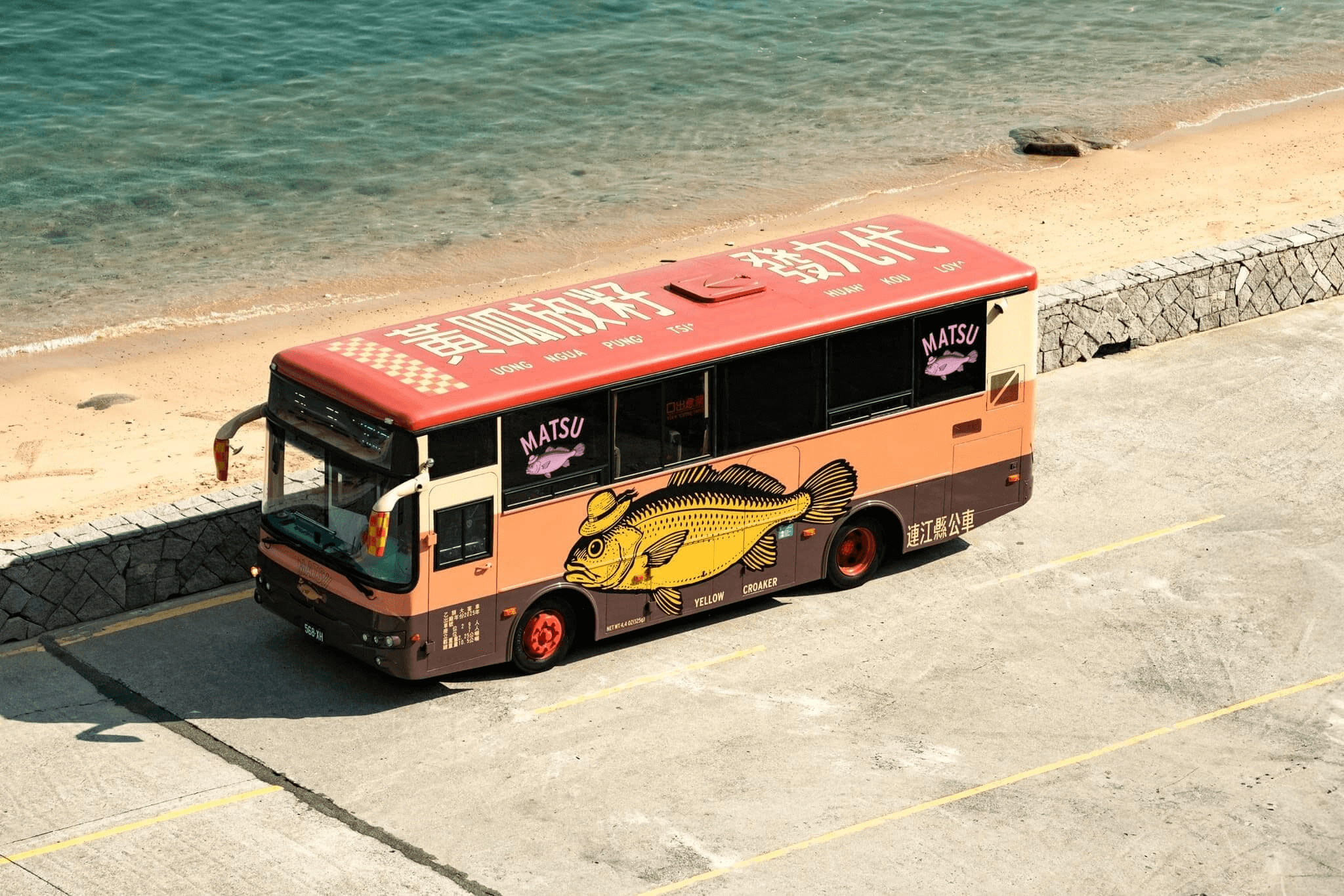 設計師用暖橘色的母魚公車呼應人文溫度,用藍綠色的公魚公車象徵沉靜的山海地景。而車頂上刻著的「黃呱放籽發九代」這句閩東語祝詞,意指黃魚大量排卵、子孫繁盛,低調地將在地生態與語言的生命力融入其中。每一次搭上這輛公車,都彷彿打開一個裝滿故事的罐頭,讓歷史與記憶跟著流動。