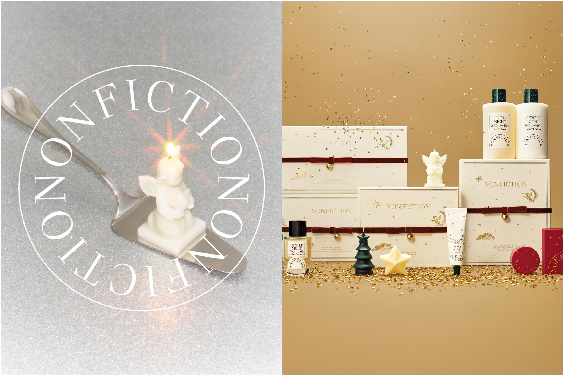 踏入充滿溫暖與奇幻的季節,NONFICTION 2025年假期限定系列以廣受歡迎的Gentle Night溫柔之夜香氣為主軸,推出節慶禮盒(內含迷你香水、迷你護手霜與節慶限定造型蠟燭)。三款精緻可愛的迷你香氛蠟燭共有聖誕樹、小天使及星星三種造型。聖誕樹款的香調包含薄荷、羅勒、香樟、檜木,藉由薄荷與檜木交織出清新芬芳,喚起冬夜中點亮聖誕樹的悸動瞬間。小天使的香調組成包含丁香、紙莎草、零陵香豆與香草,烤南瓜與丁香氣息交融,綿密甜潤,如同烘焙間飄出的溫暖美食香氣。星星蠟燭則為果味蘭姆酒與開心果的柔滑堅果香相融,蘭姆酒、開心果、香草、琥珀木四種香氣的組合,彷彿一杯在燭光下微微晃動而呈現閃爍光芒的特調雞尾酒。